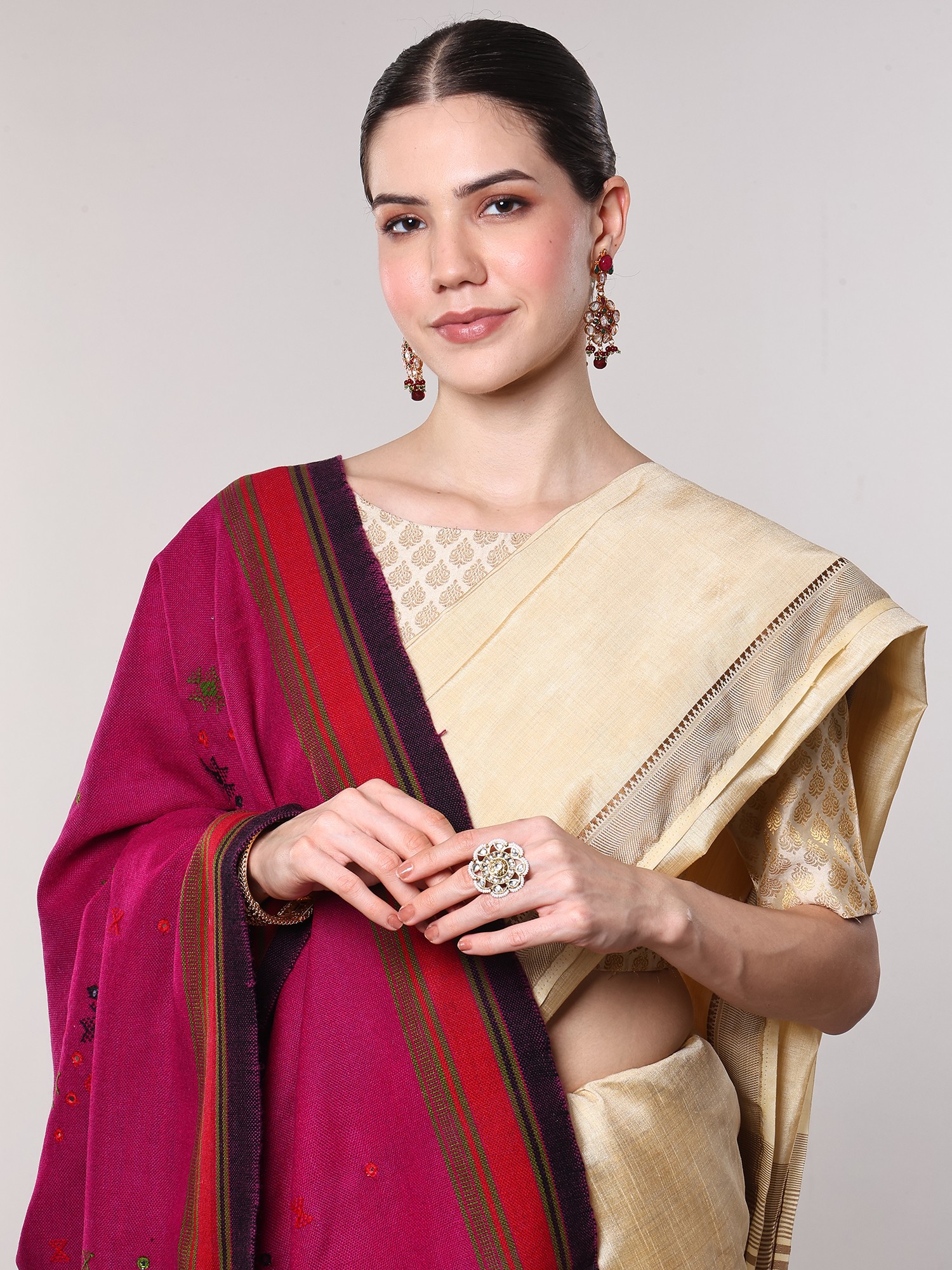 The Kutch shawls have a very long history in textile, they aren’t simply woven. The shawl's weaving is composed of a variety of geometric patterns and embroidery. Additionally, after the artist finishes the piece, they finish the piece with mirror works— weaving, embroidery, and mirror work; these three components aren’t just simple components. They are the main components and trademarks of kutch shawls. When a person wears a Kutch shawl It is more than just wearing an accessory, it is an appreciation of art and culture. It also enables the wearer to carry a piece of Kutch's history and its folks' creativity.