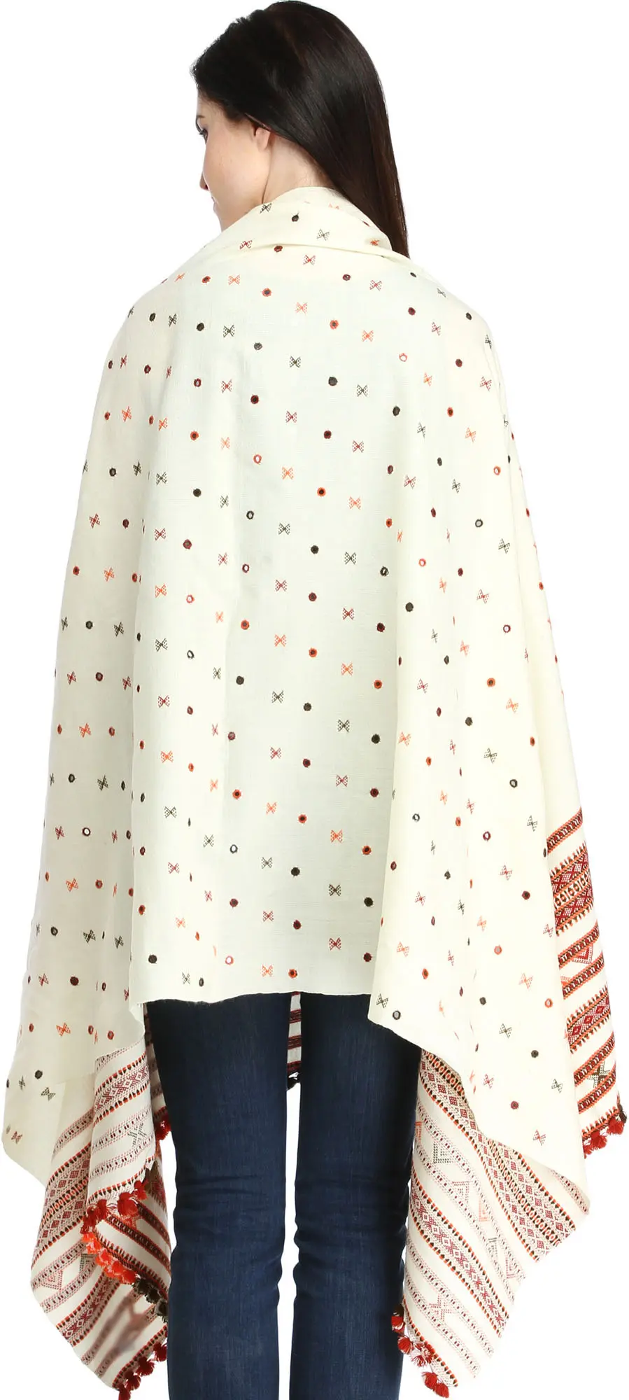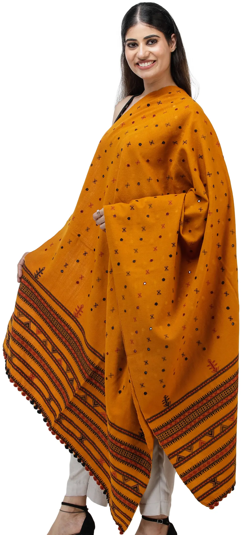 Shawls are a must-have for every woman. This shawl is made out of pure wool and interwoven with mirror embroidery all over the shawl. The border is woven out of pure woolen thread, giving this product an attractive look. It has an individual design which makes it very popular among women. This shawl will enhance your beauty and make you stand apart from others in any gathering or event. This shawl has an aura, grace and beauty from the Kutch region, bringing out diverse designs and colours. It depicts the local artistry of Kutch in Gujarat.