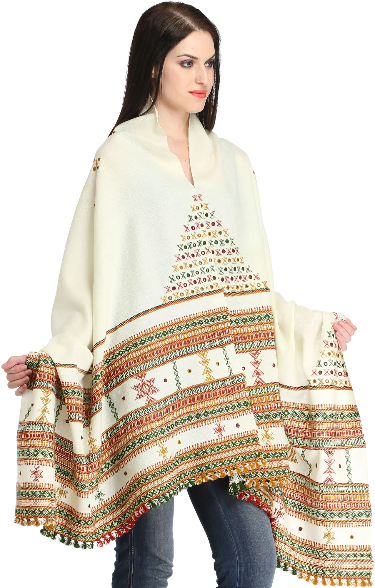 Shawl from Kutch with Woven Border and Embroidered Mirrors