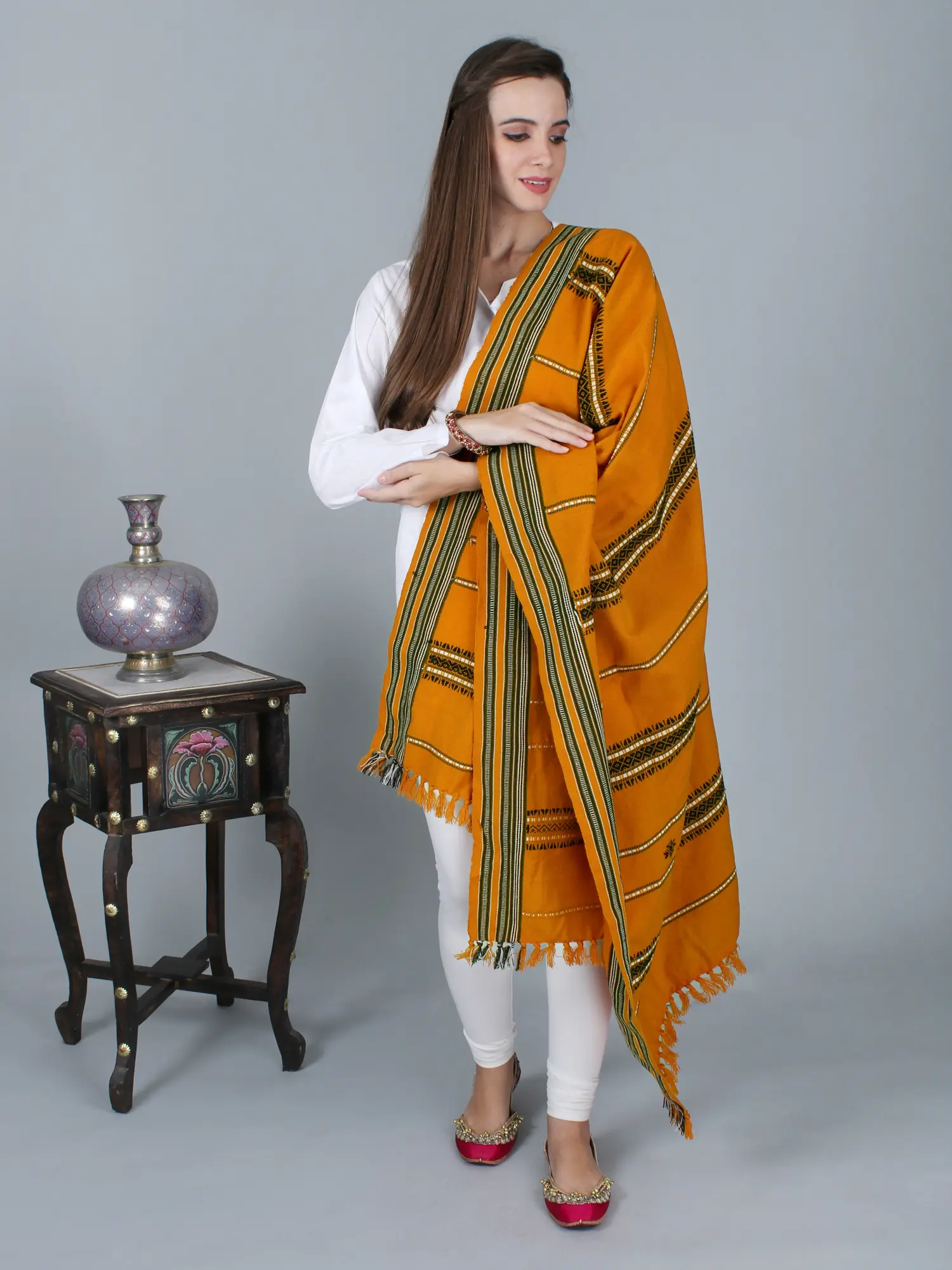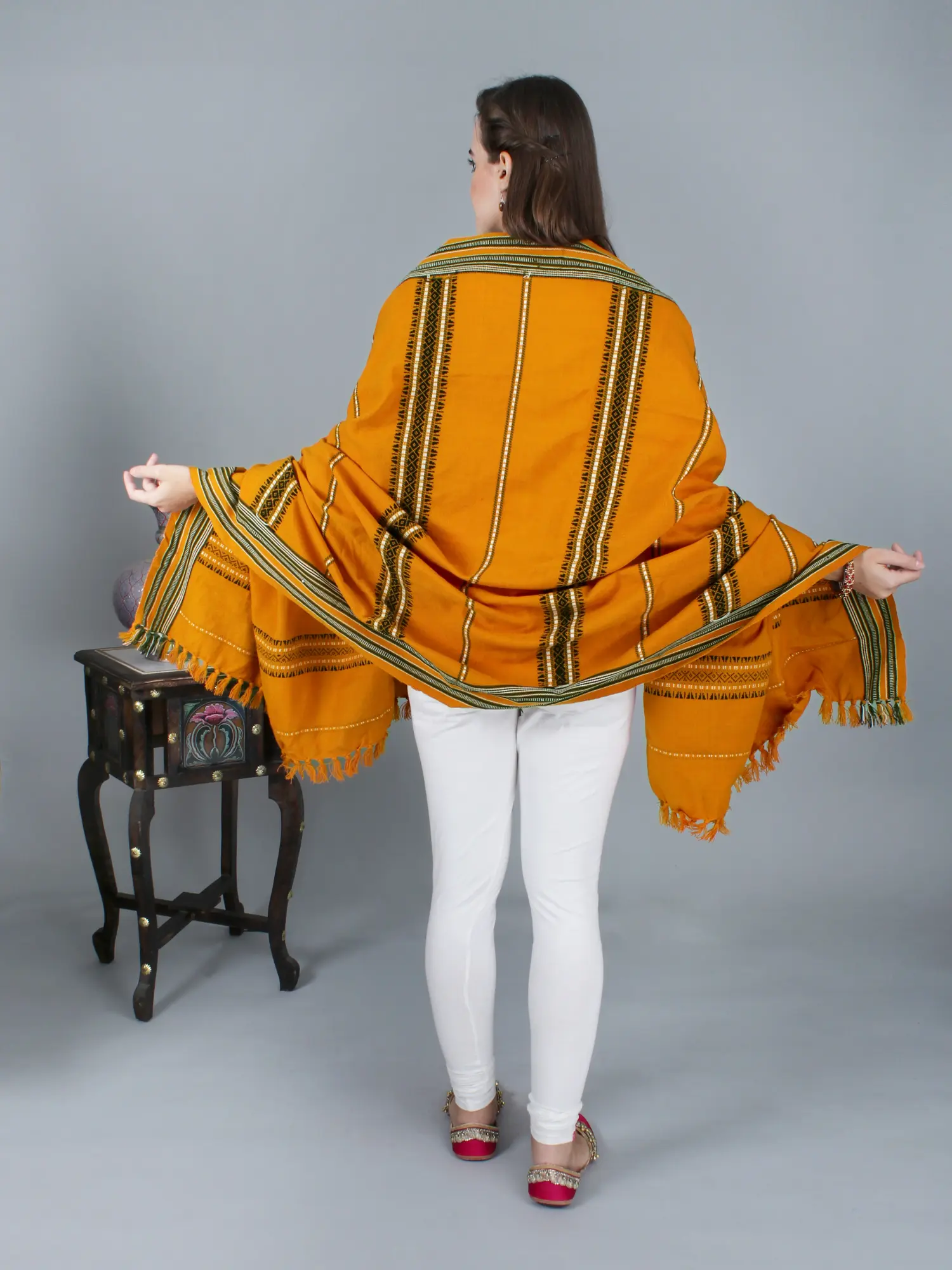 Elevate your style with our Shawl from Nagaland, a mesmerizing blend of tradition and contemporary fashion. The woven border and thread weave are a testament to the skilled hands that craft these shawls. Nagaland's textile heritage is a journey through time, and this shawl reflects the region's unique design aesthetics. The earthy colors draw inspiration from the rich Naga culture. By embracing these pieces, you not only carry a part of Nagaland's history but also adorn yourself with the intricate artistry that resonates with modern fashion trends.