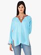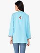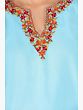 Light as feather fabric of cotton in the refreshing blue shade, this short kurti becomes a style statement with the beautiful Kashmiri Aari embroidery that can elevate any attire. The neckline, sleeves, and hem of the kurta are charmingly adorned with floral patterns. On the back, a lovely flower bunch continues the ornamentation inspired by nature, crafting a piece that is for everyday yet unique in its appeal.