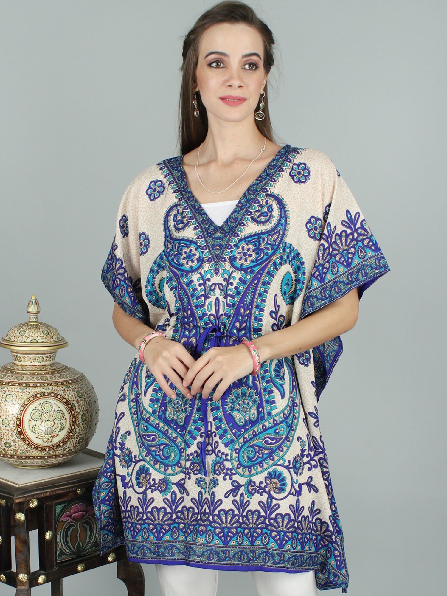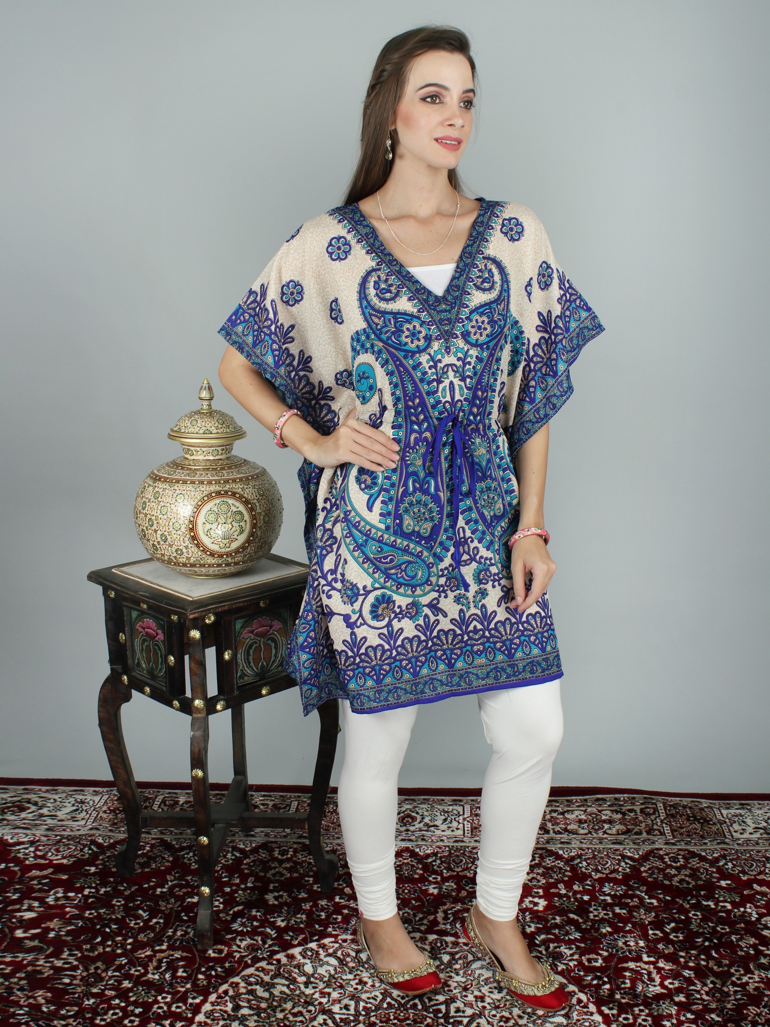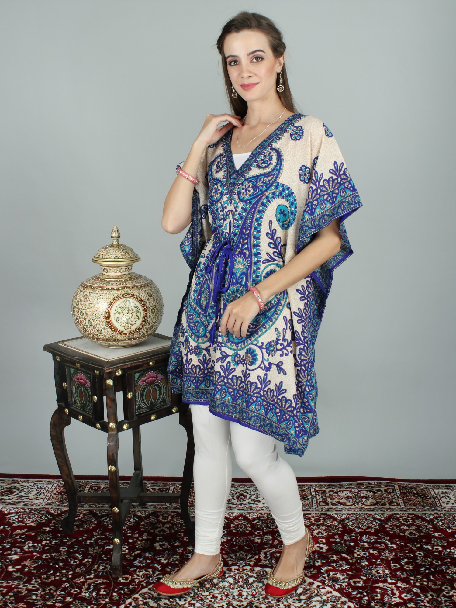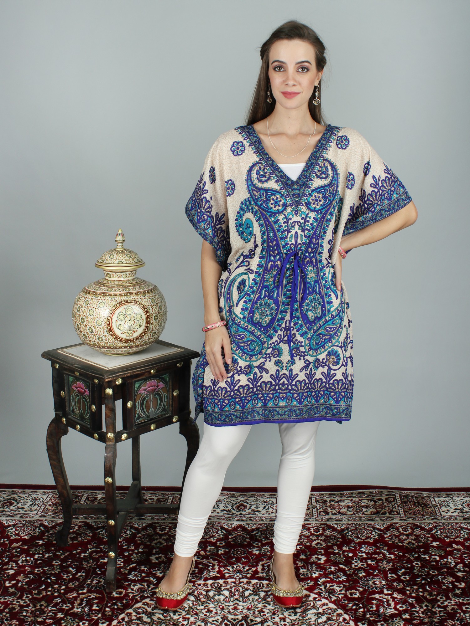 Elevate your bohemian style with the Short Kaftan featuring printed paisleys and floral motifs, along with a Dori at the waist. This kaftan is a canvas of vibrant patterns, reflecting the free-spirited charm of boho fashion. The Dori at the waist adds a touch of whimsy, allowing you to customize the fit and showcase your unique style.