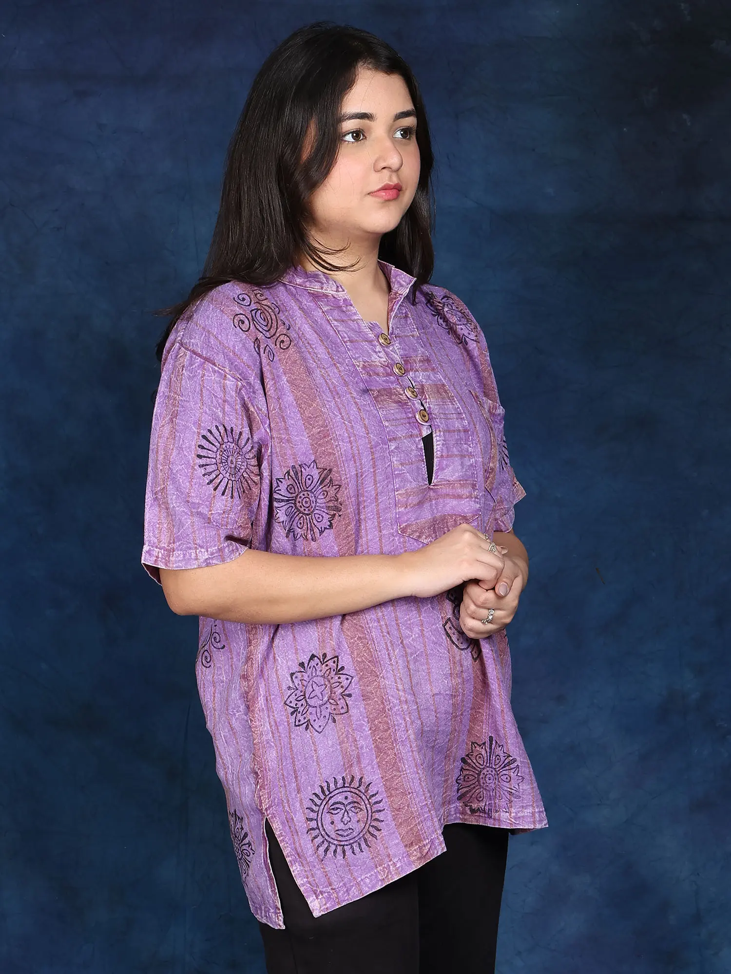 Made from 100% premium cotton, this Kurti is incredibly comfortable and soft against the skin. The breathable fabric keeps you cool and relaxed throughout the day. The relaxed fit allows for a wide range of movement, making it perfect for meditation, yoga, or even just running errands. The versatility of this Kurti allows it to be dressed up or down, making it suitable for a variety of occasions. Pair it with leggings or jeans for a casual look, or dress it up with jewelry and sandals for a more formal event.