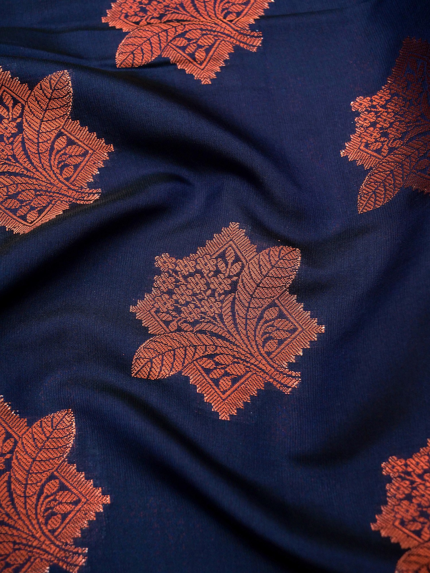 Zari is one of the distinctive features of Banarasis that makes the saree look graceful and beautiful. The selection of Zari is done as per the base color of the saree. Usually, in most sarees, copper zari is used but sometimes real silver and gold zari may also be used.