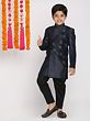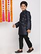 Silk Blend Designer Indowestern Navy-Blue Sherwani With Viscose Pant Style Pajama