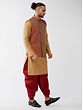Silk Blend Beige Butti Motif Kurta With Mango Pattern Embroidered Dhoti