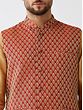 Rose-Gold Silk Blend Kurta Pajama With Grey Banarasi Brocade Modi Jacket