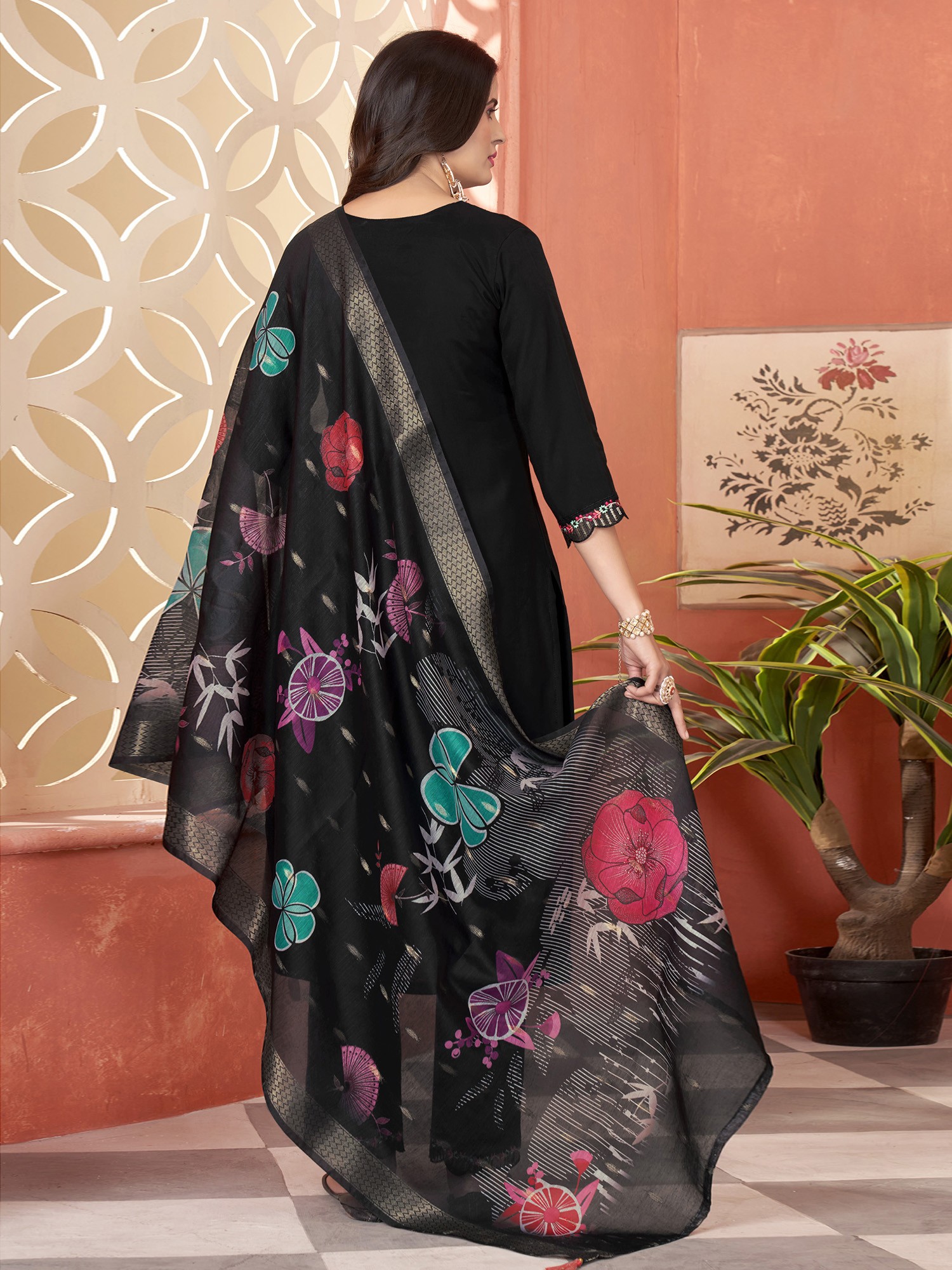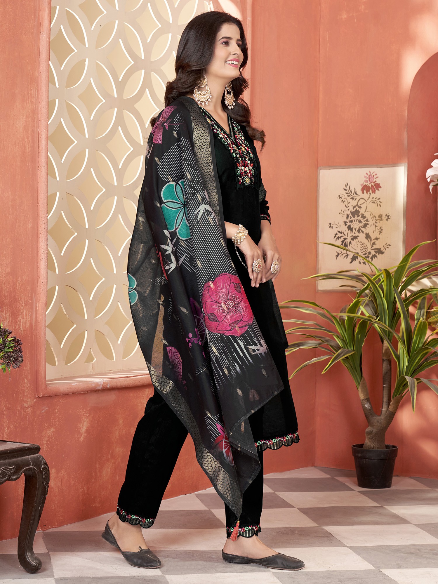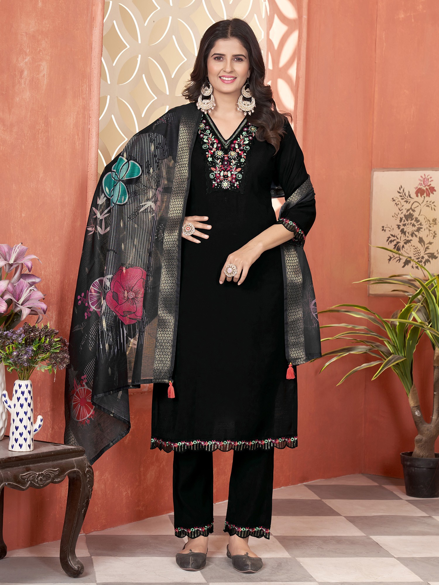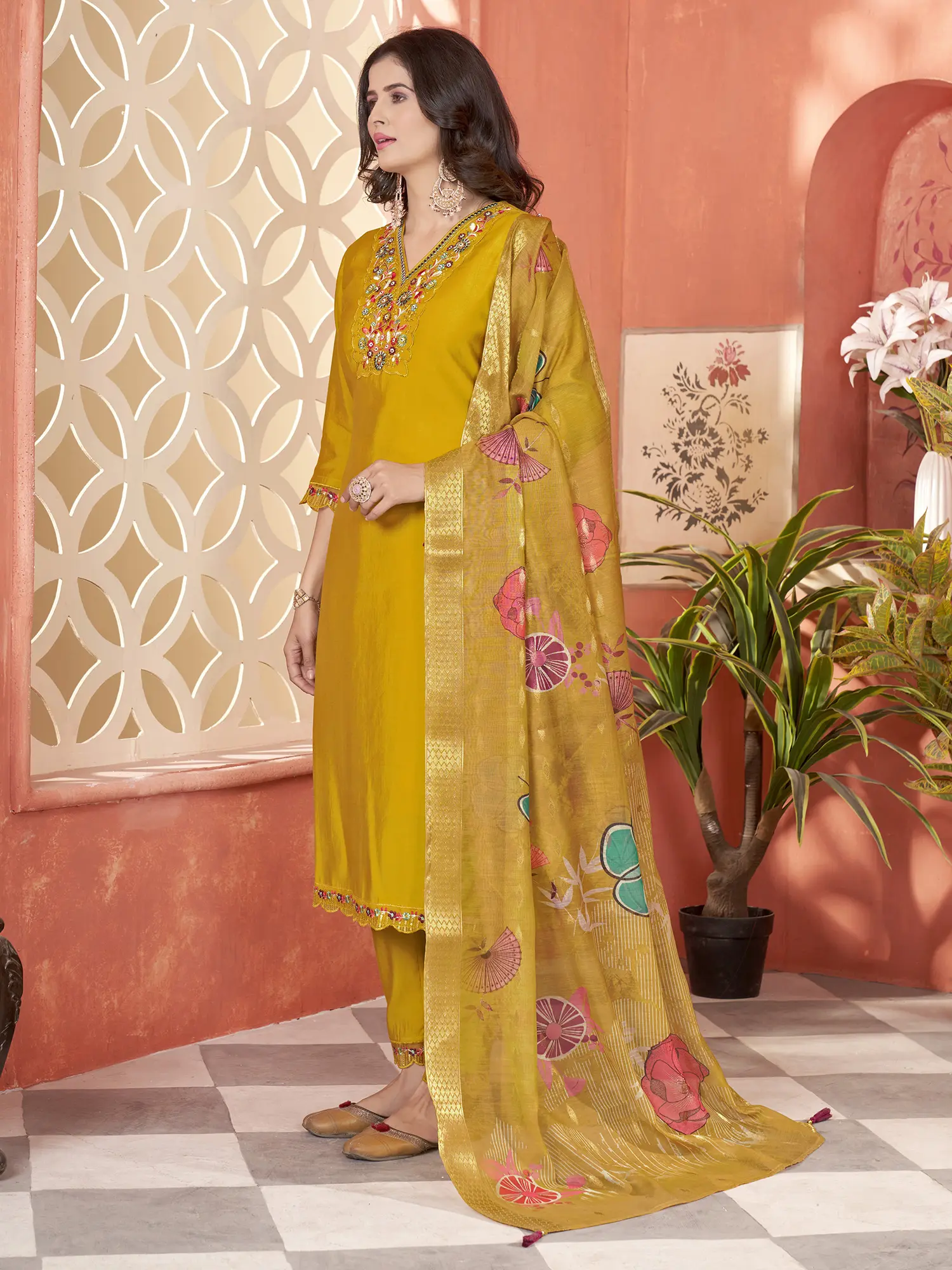 Embroidery And Sequence Work Floral Fancy Silk Salwar Suit With Matching Dupatta