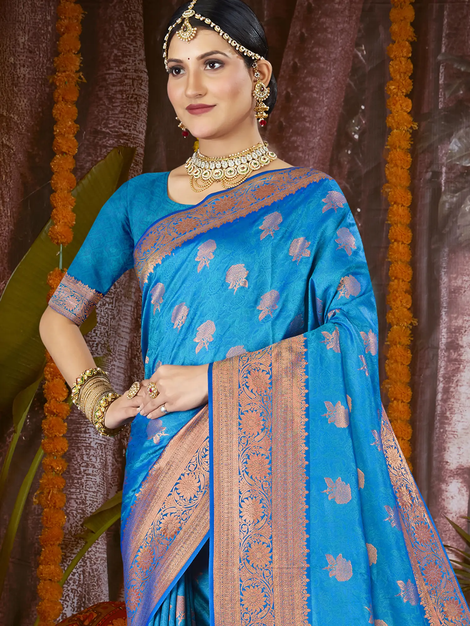 Columbia Banarasi Katan Silk Sari With Floral Woven Border