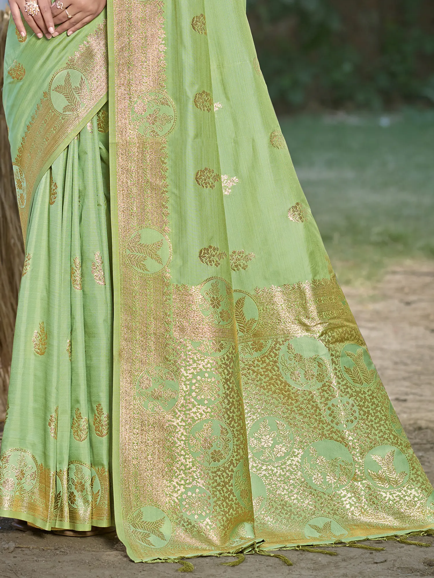 Banarasi Saree with All-over Zari Woven Bootis and Floral Vine Contrast Border-Pallu