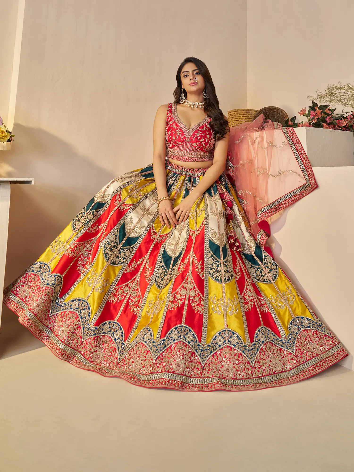 Floral Embroidery And Sequins Work Satin Silk Lehenga Choli With Net Dupatta