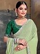 Pure Chiffon Green-Glow Banarasi Saree with Unstitched Blouse | Handloom Zari Woven