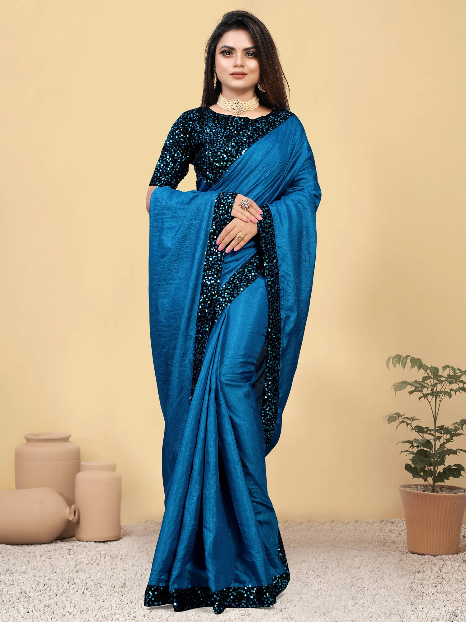 Shimmer Sari with Sequins and Crewel Embroidery All-Over