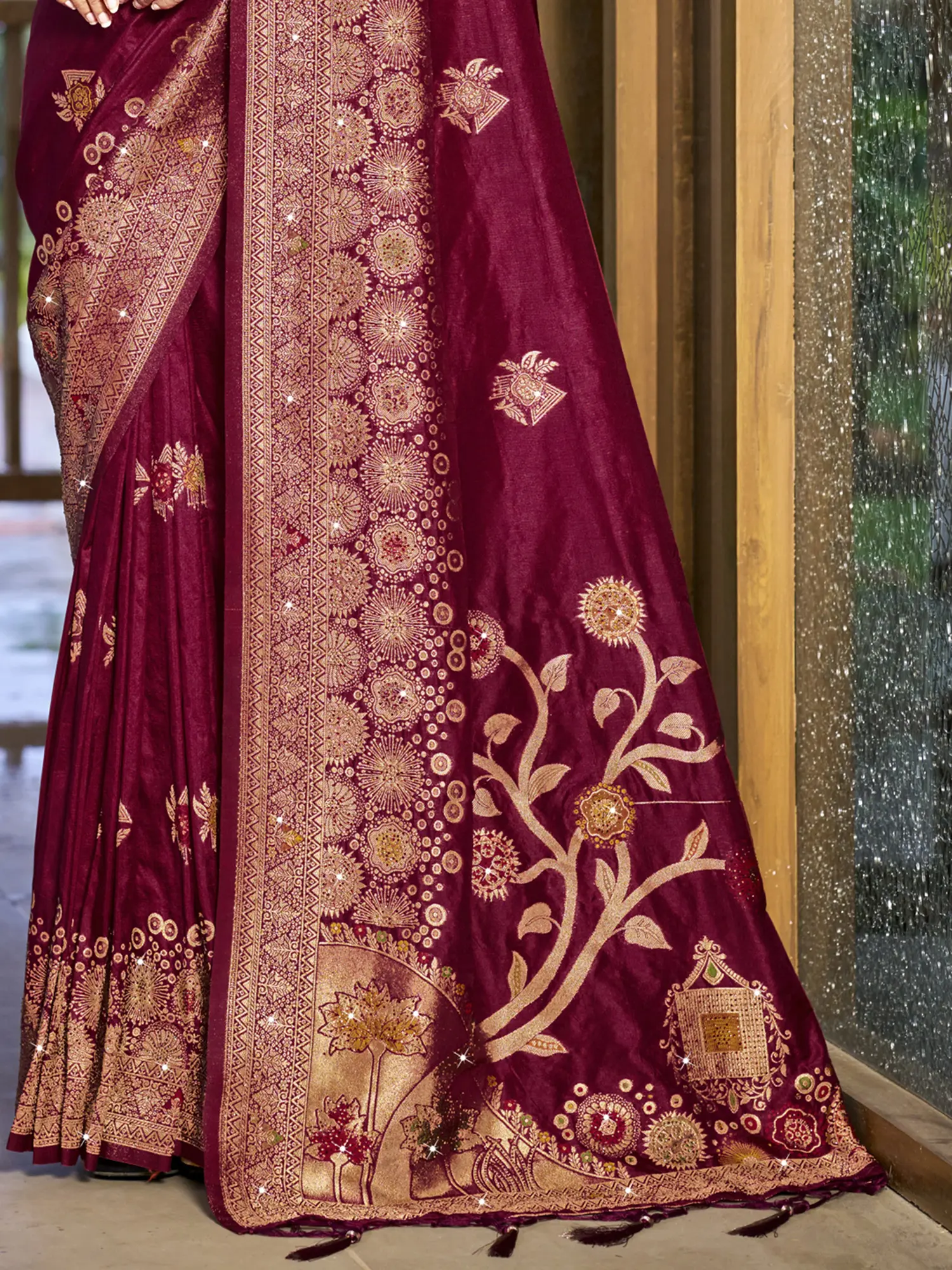 Peacock Border Paithani Silk Saree with Tassels Pallu and Blouse for Festival