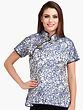 Silver and Blue Cheongsam Jacket from Sikkim with Woven Flowers