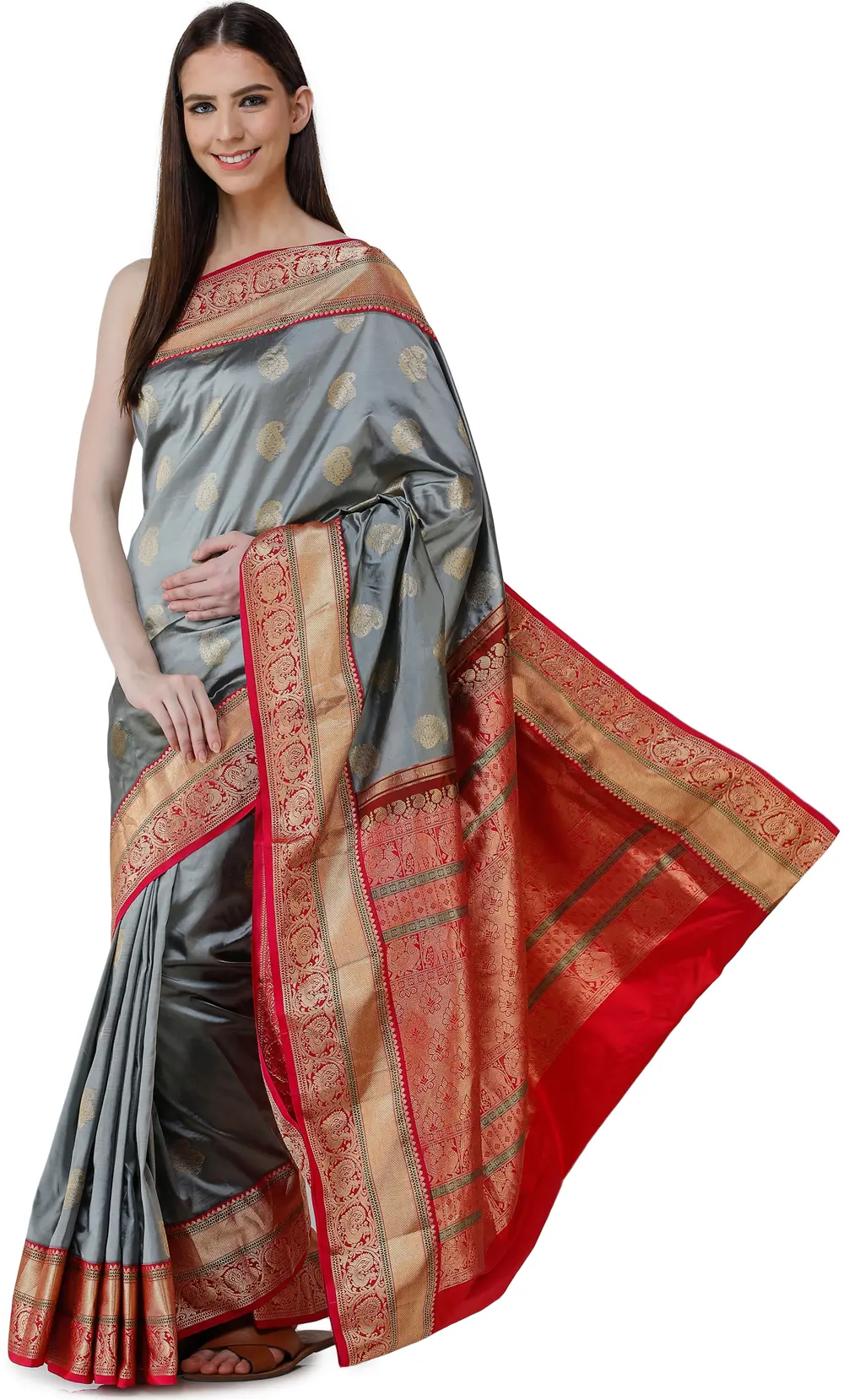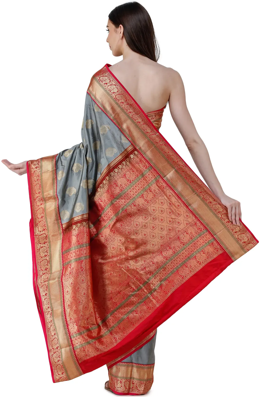 Paradise-Pink Brocaded Uppada Sari from Bangalore with Zari Woven Peacocks on Border
