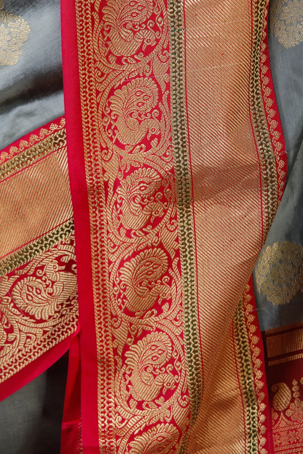 Macaw-Green Brocaded Handloom Uppada Saree from Bangalore with Peacocks on Border