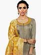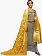 Simply-Taupe Palazzo Salwar Kameez Suit with Floral Embroidery and Zari Woven Yellow Dupatta