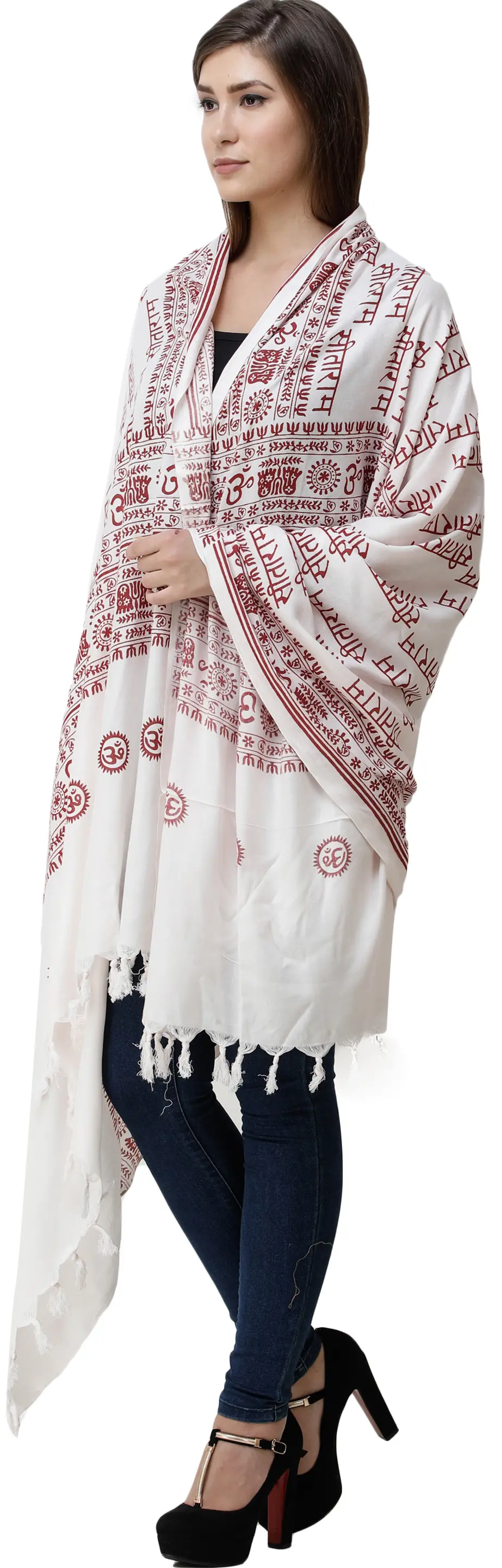 The prayer shawl is fashioned from a durable and comfortable polycotton blend, ensuring it feels gentle against the skin while withstanding frequent use. Its generous dimensions allow for versatile styling, whether draped gracefully over the shoulders, used to cover the head during prayer, or wrapped around for warmth and comfort. The hemline is finished with delicate tassels, adding a touch of traditional charm and movement to the piece. This shawl is more than just an accessory; it is a wearable sanctuary, designed to facilitate a deeper connection with the divine and to carry the blessings of Kashi wherever you go. It makes a thoughtful and meaningful gift for loved ones who cherish their spiritual journey and the traditions of Sanatan Dharma.