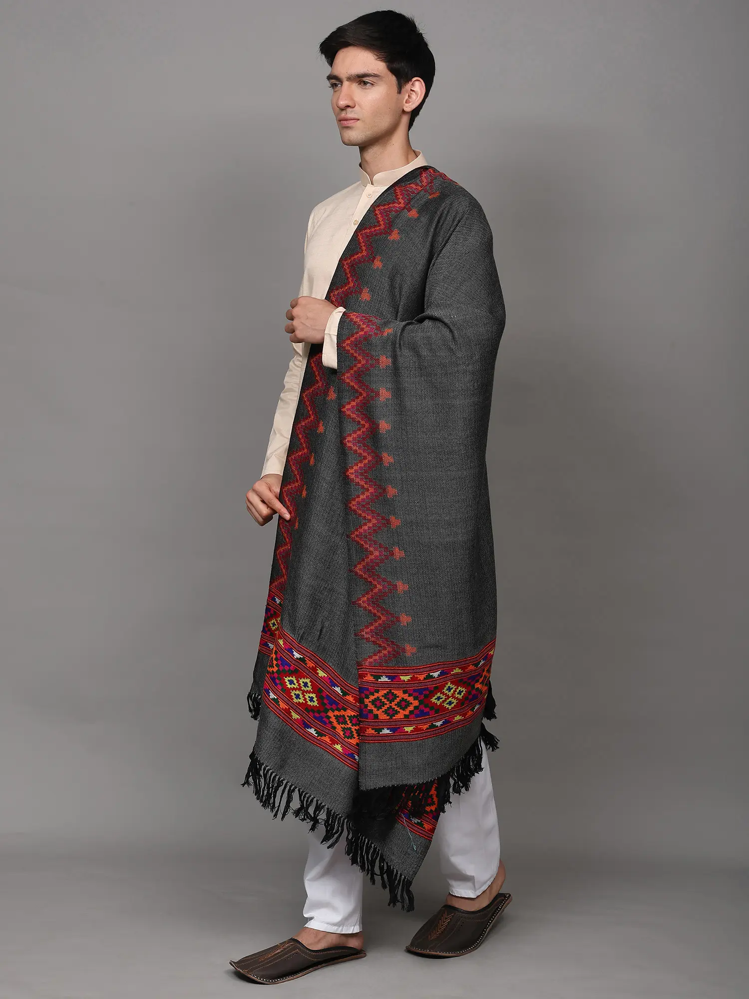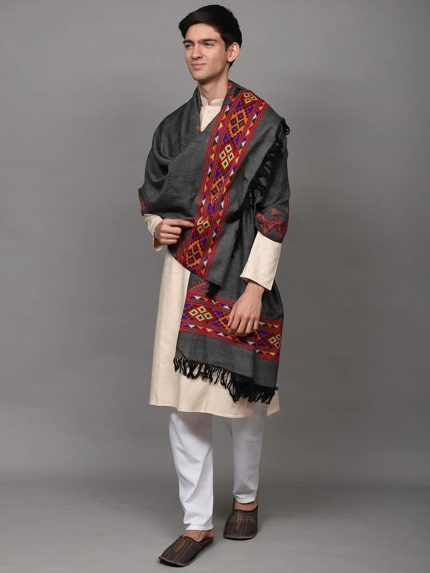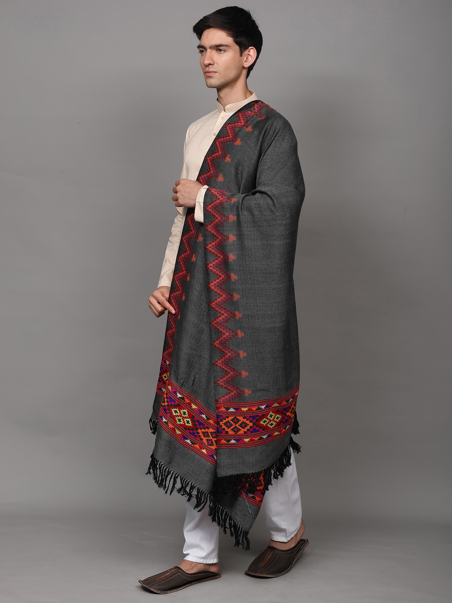 Kullu Palla Men's Shawl with Kinnauri Woven Border