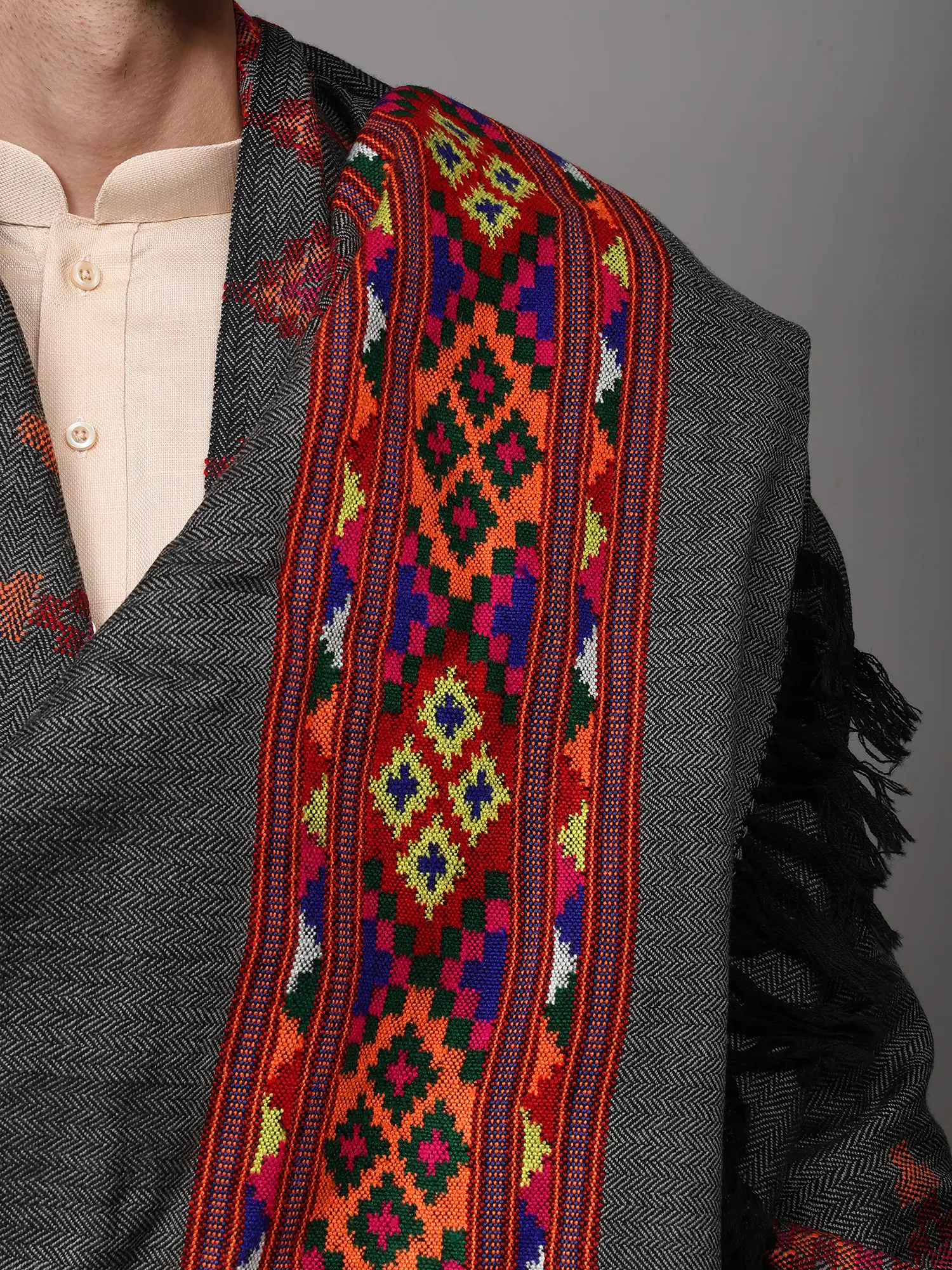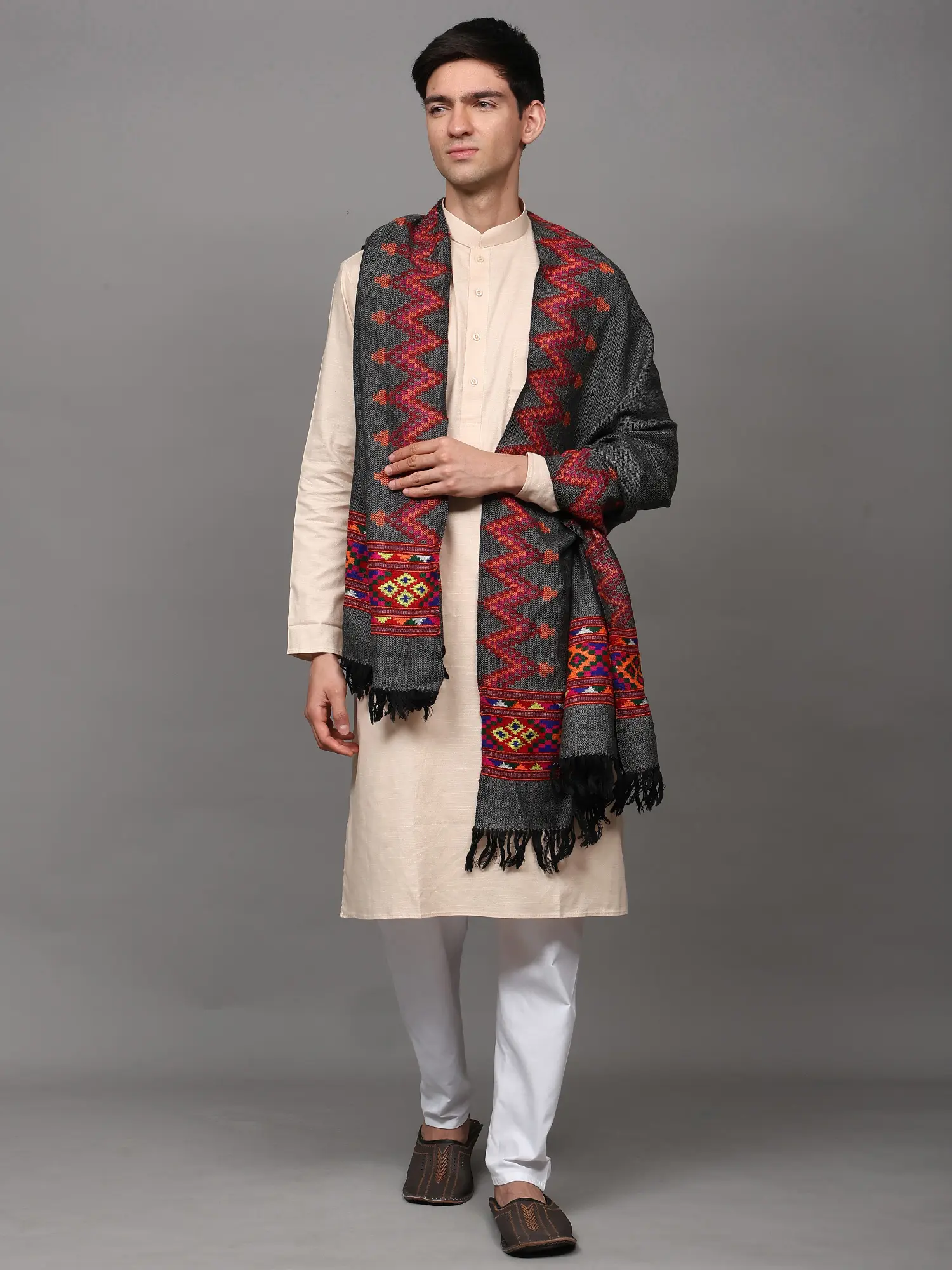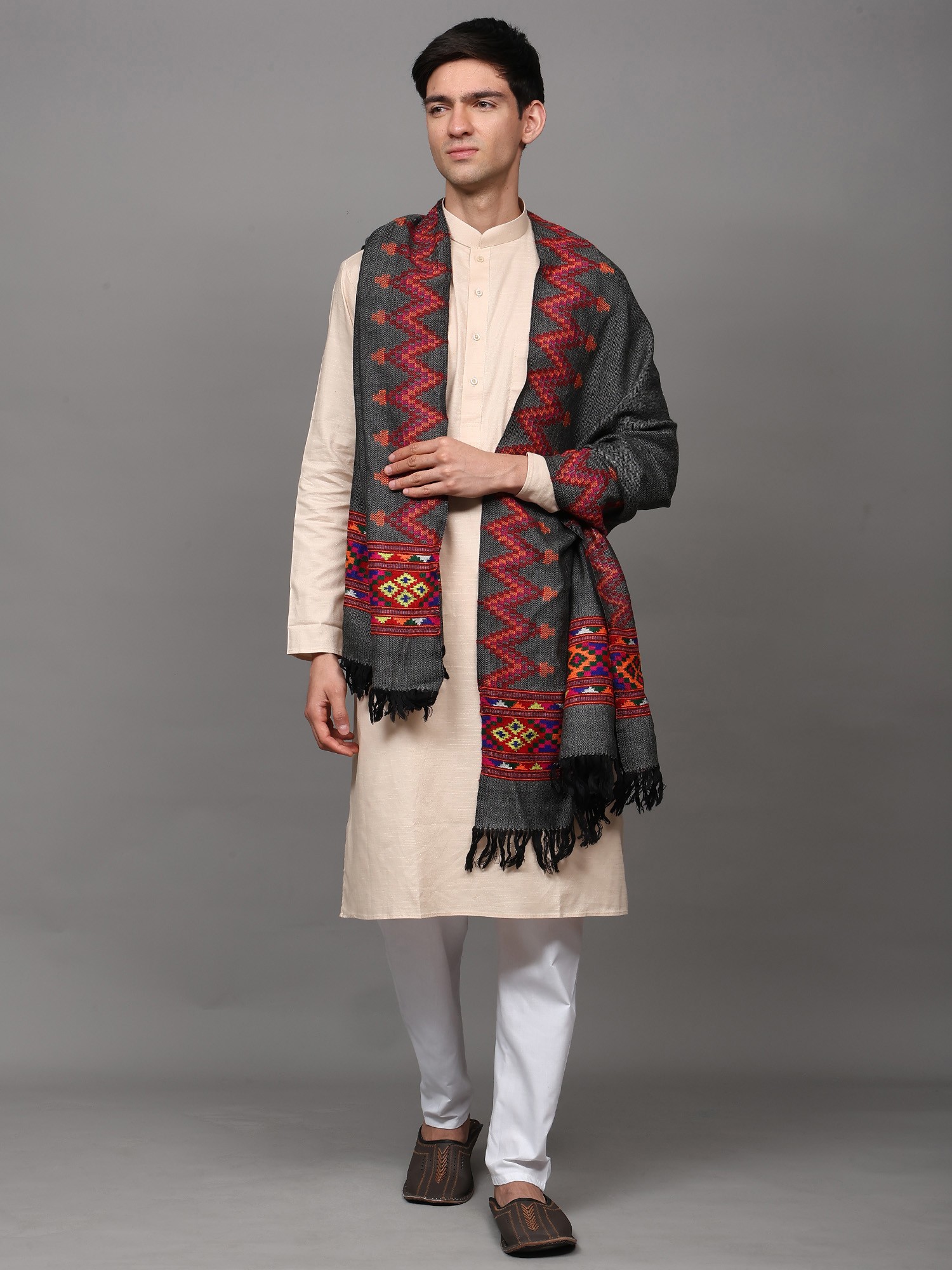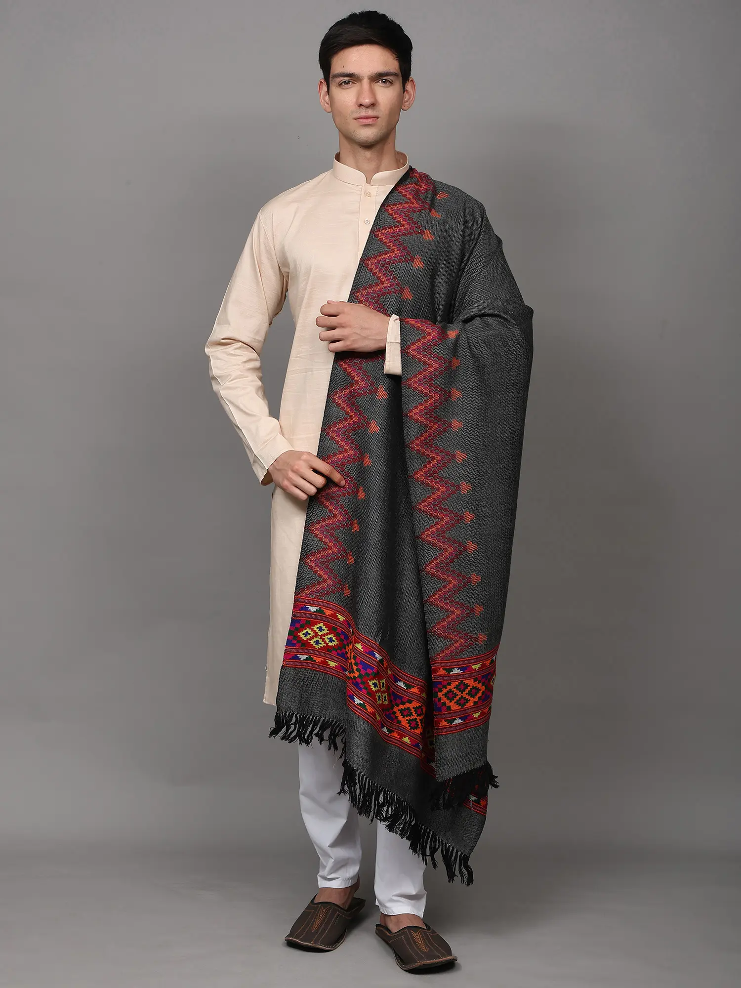 Kullu Palla Men's Shawl with Kinnauri Woven Border