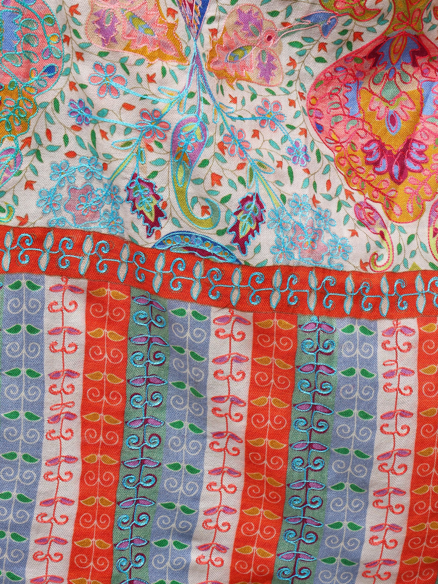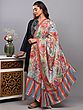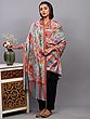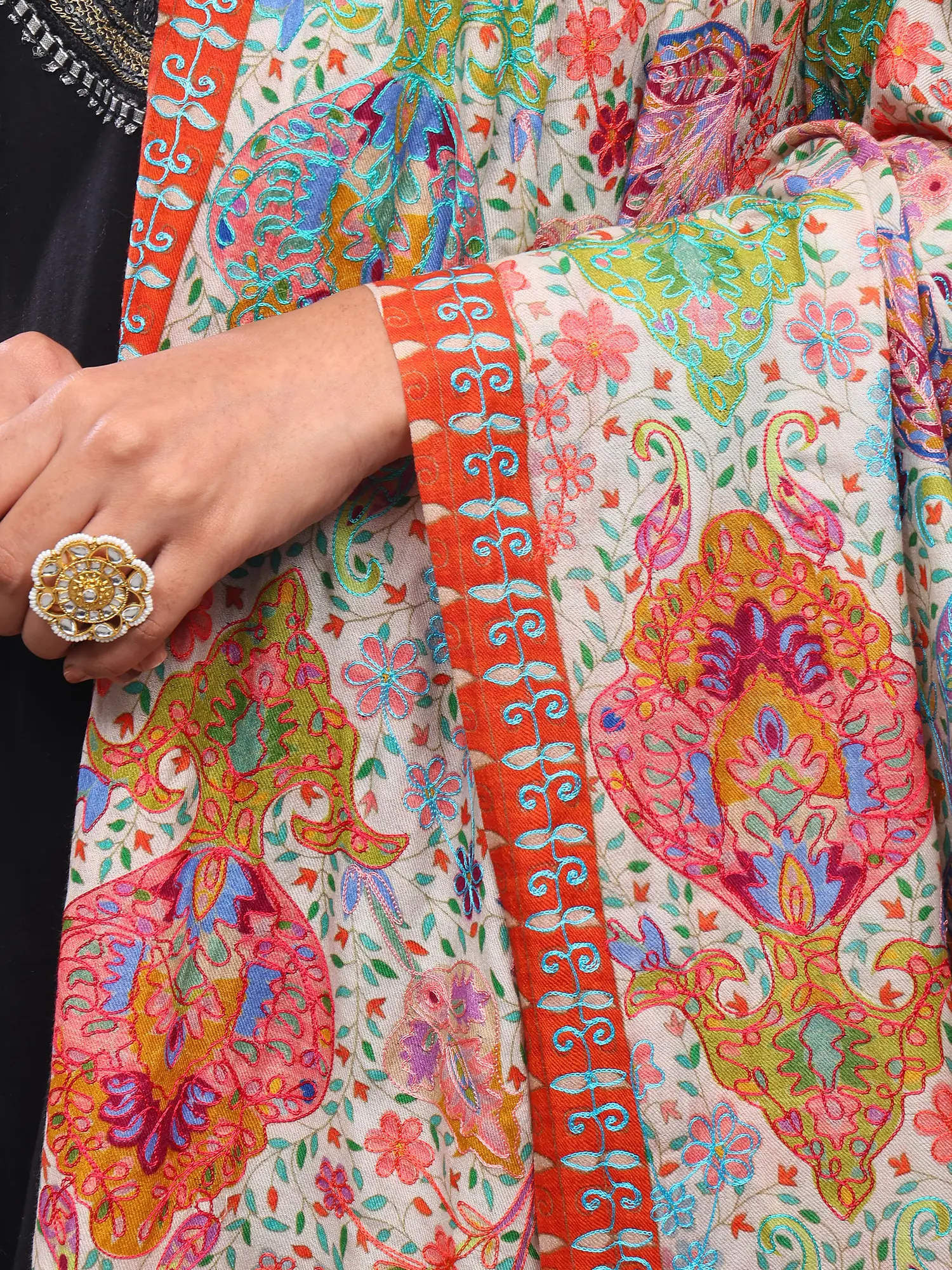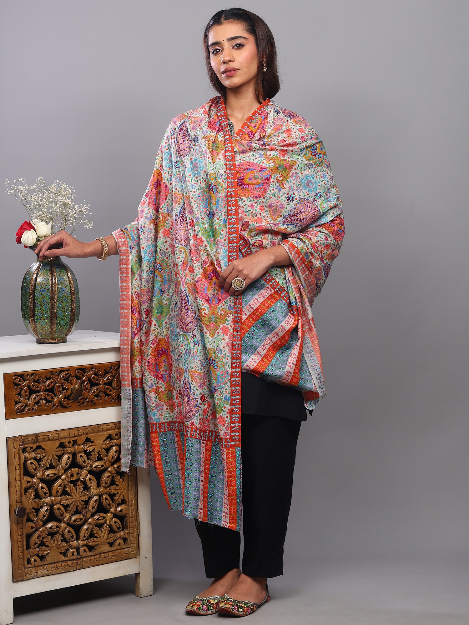 Military-Olive Shimmer Shawl with Woven Queen’s Court in Multicolor Thread Kani Border
