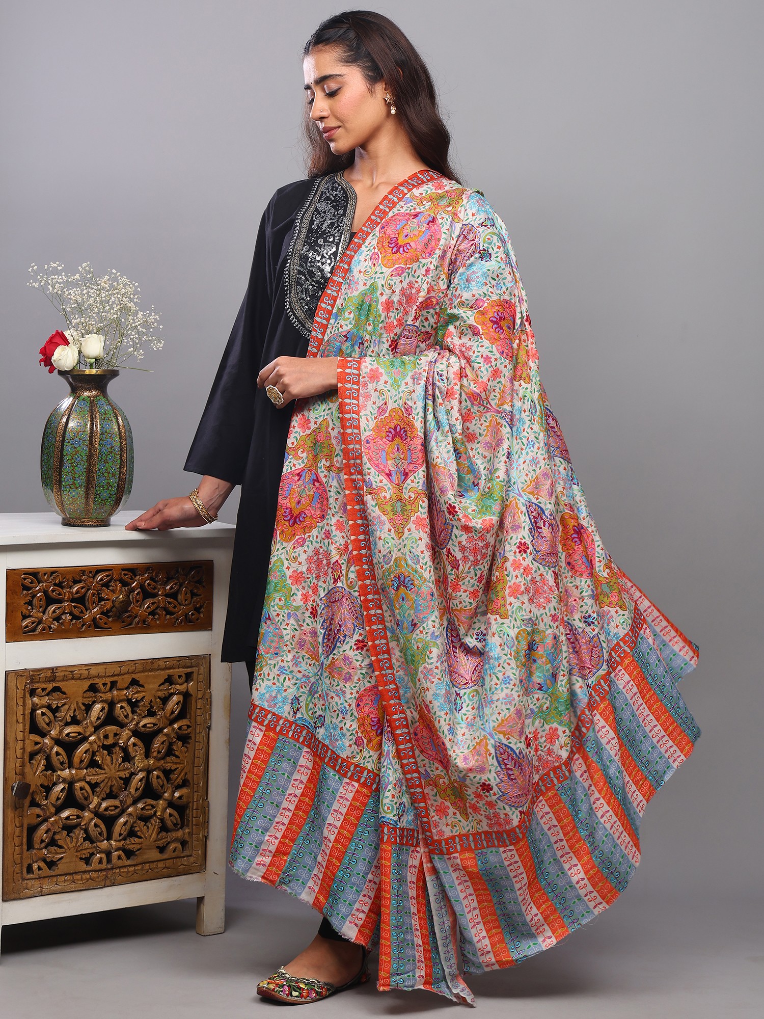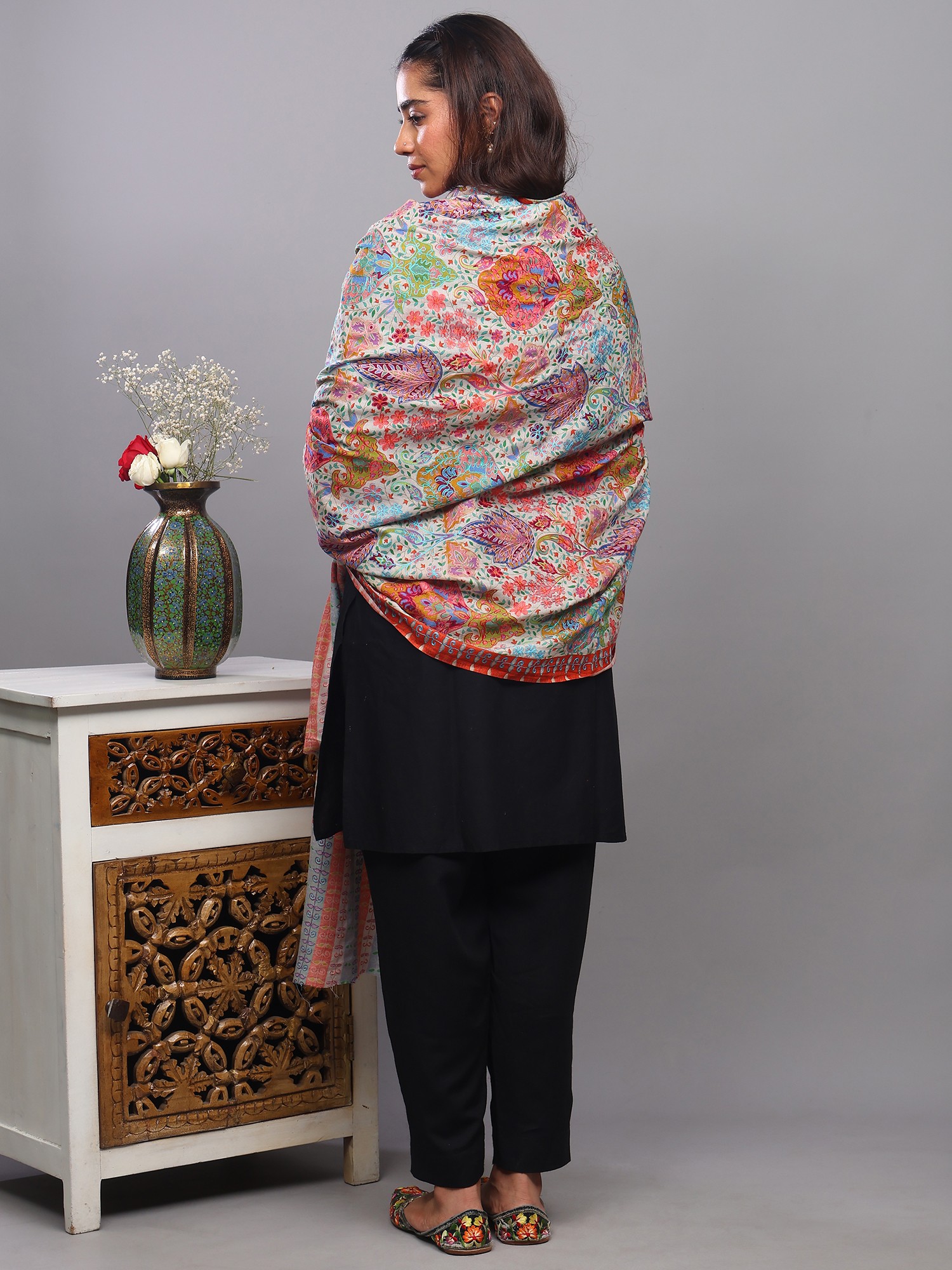 Bristol-Black Reversible Pure Wool Stole with Kani Weave Floral Palla