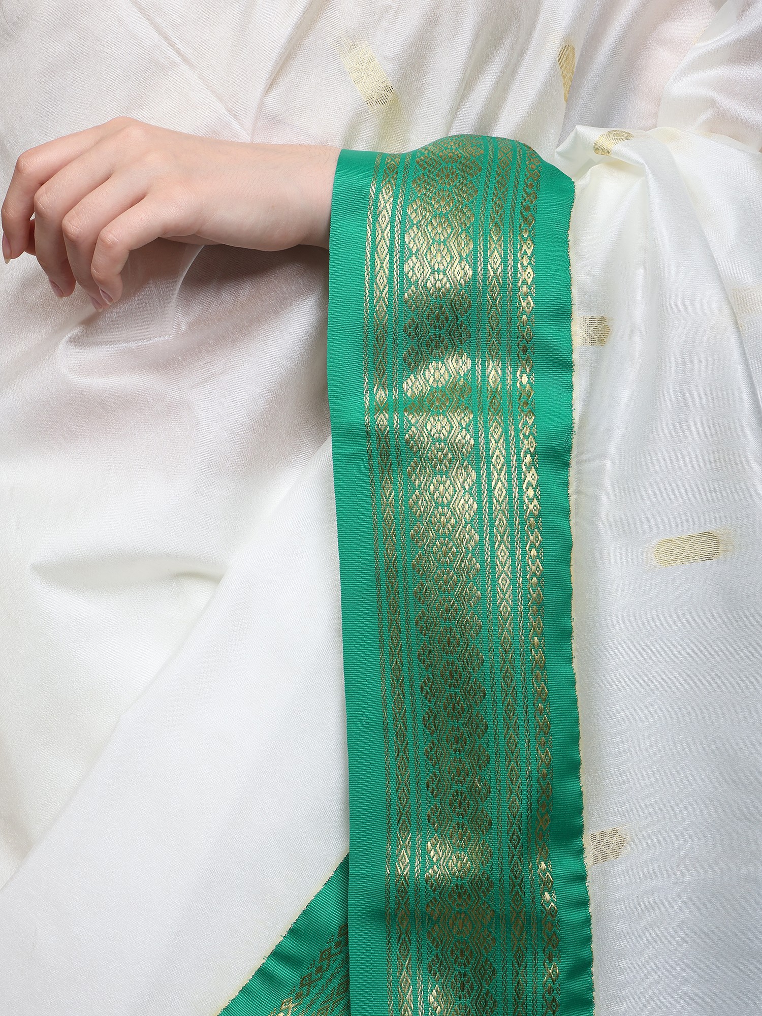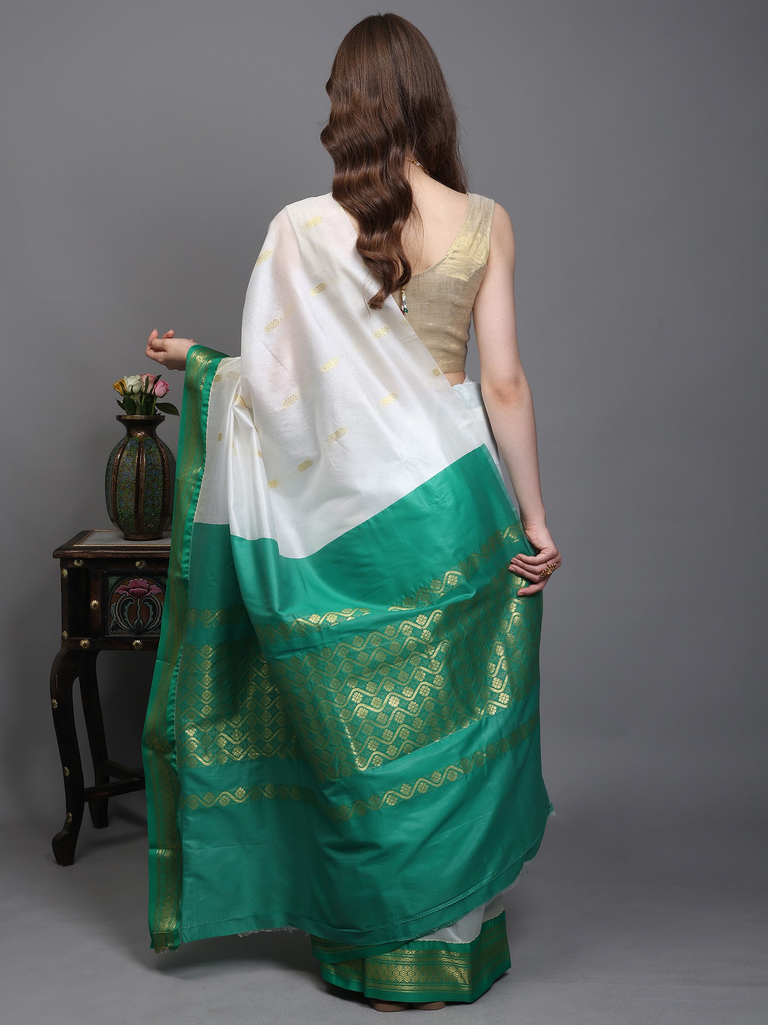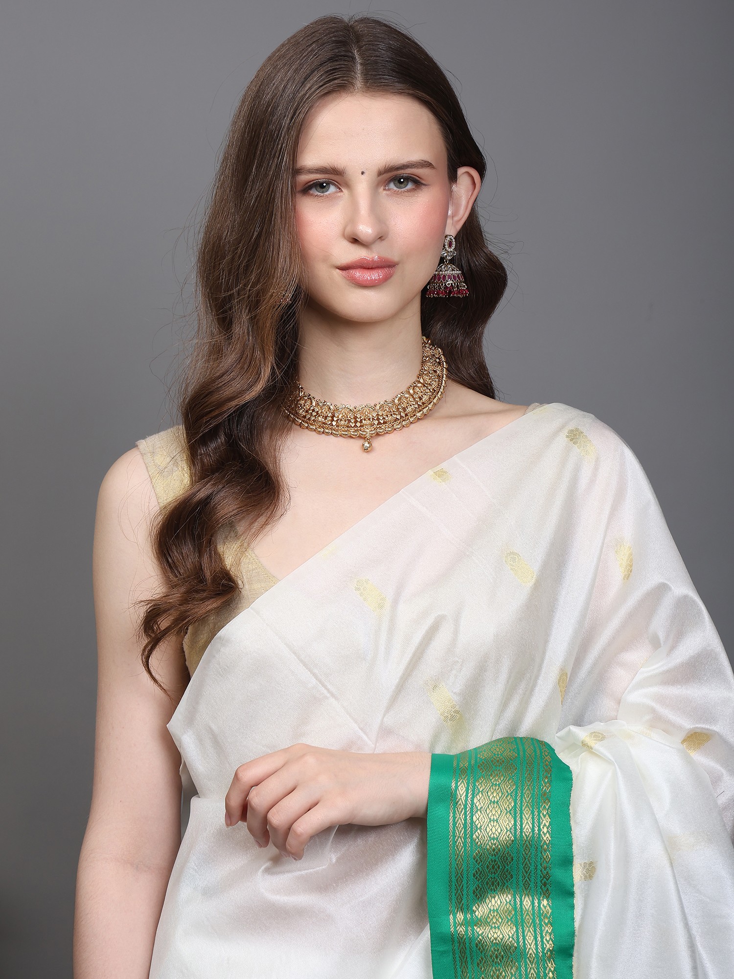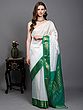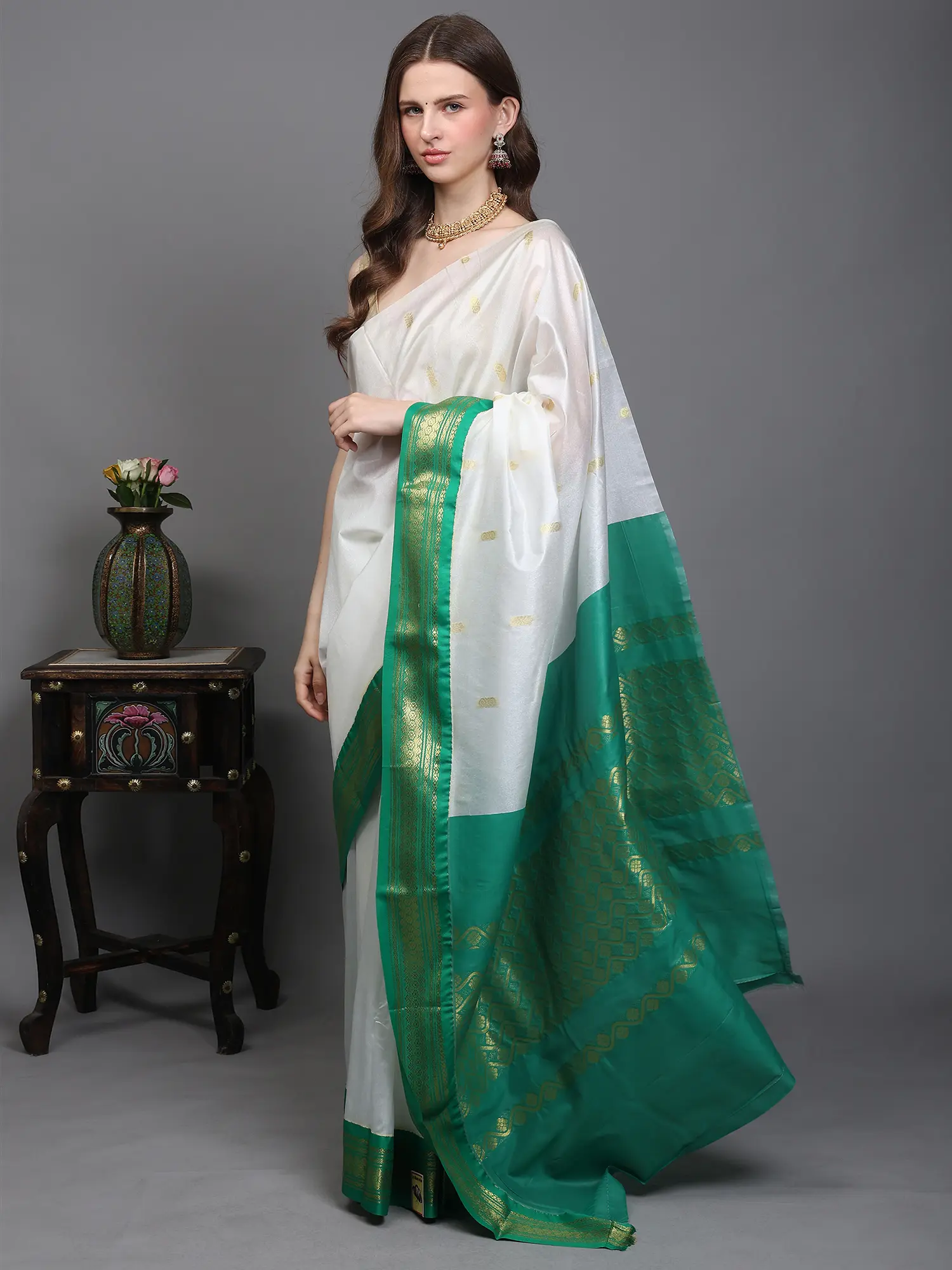 Snow-White Temple Saree with Zari Woven Motifs and Contrast Pallu-Border from Kumbakonam