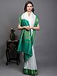Bleached-Aqua Zari work Pure Silk Saree with Stripe Border from Bangalore