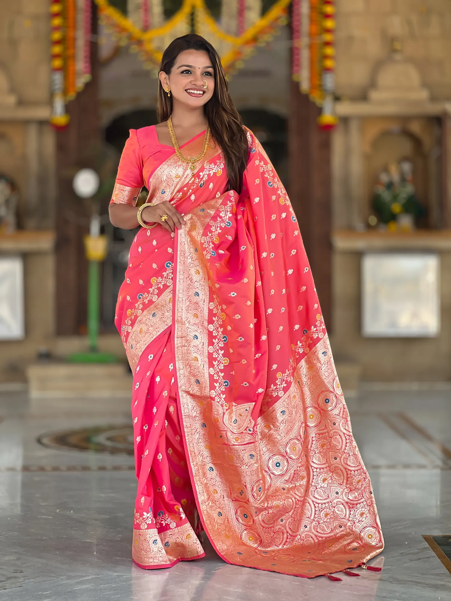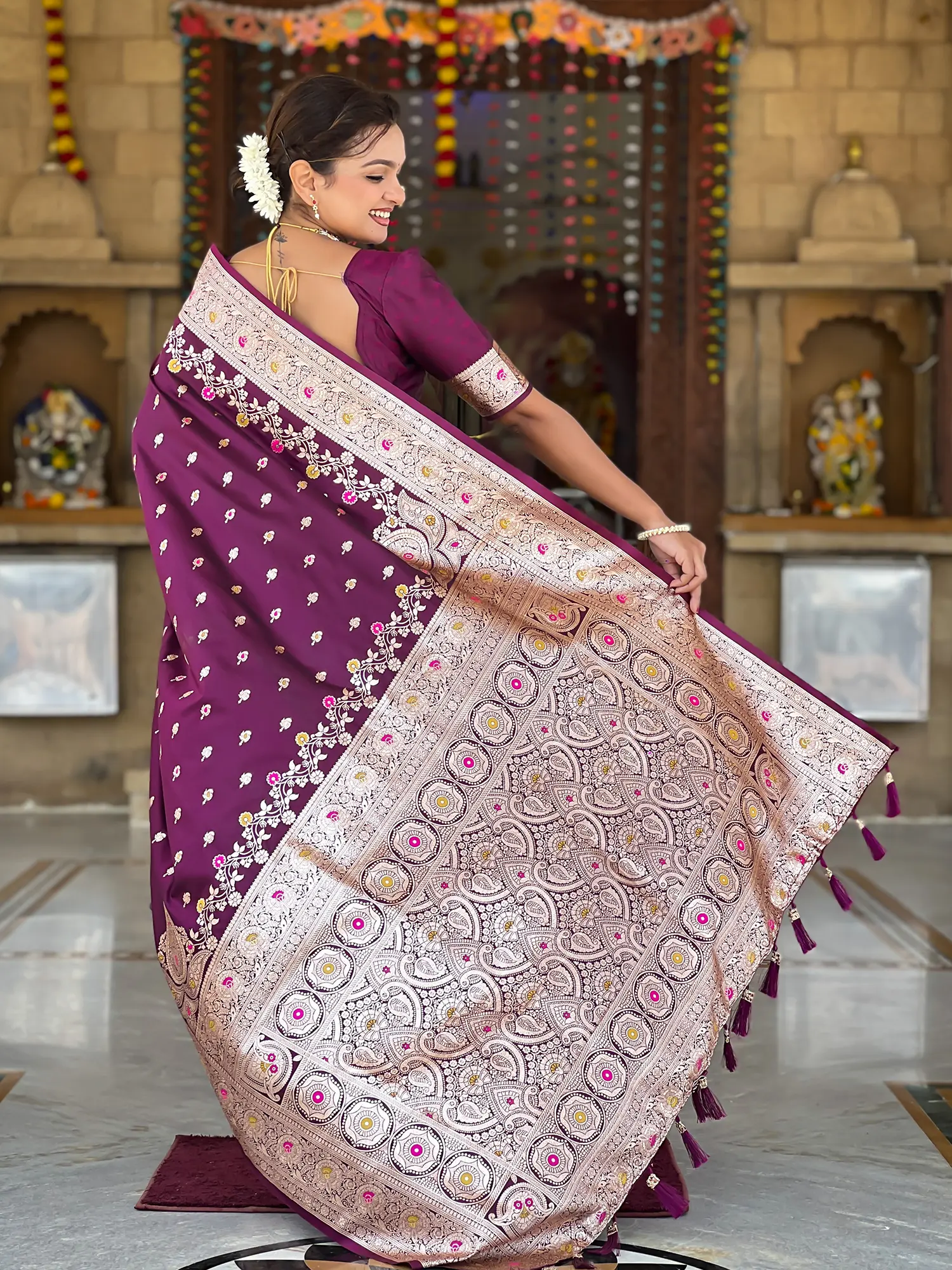 Soft Banarasi Silk Saree Zari Weaving Meenakari Work Rich Pallu Heavy Border Wedding Bridal Festive Ethnic Indian Wear