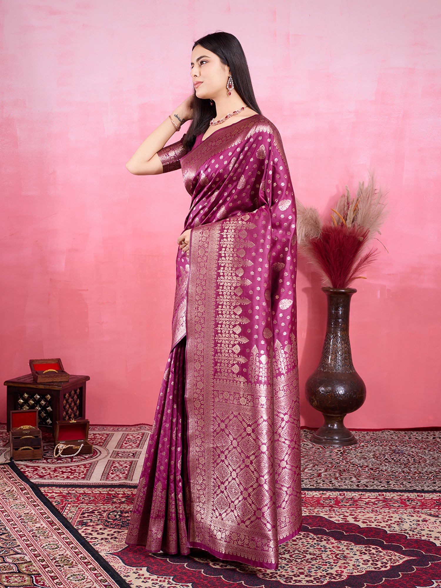 Art Silk Saree with Golden Stripes and Traditional Paisley Motifs All Over