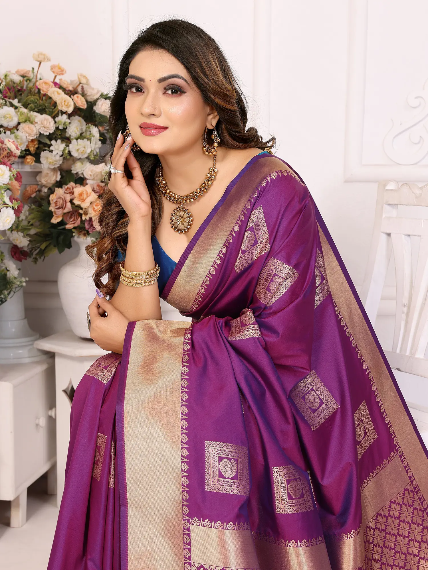 Designed to make you shine at any celebratory occasion, this saree is the epitome of festive wear. Whether it's a wedding, a religious ceremony, a cultural gathering, or a special party, this saree will ensure you are the center of attention. Its opulent texture and intricate detailing make it a statement piece, effortlessly conveying elegance and grace. Pair it with your favorite traditional jewelry and a complementary blouse to complete a look that is both resplendent and unforgettable. This saree is more than just an outfit; it's an heirloom, a testament to enduring style and cultural richness, ready to be cherished and worn for years to come.