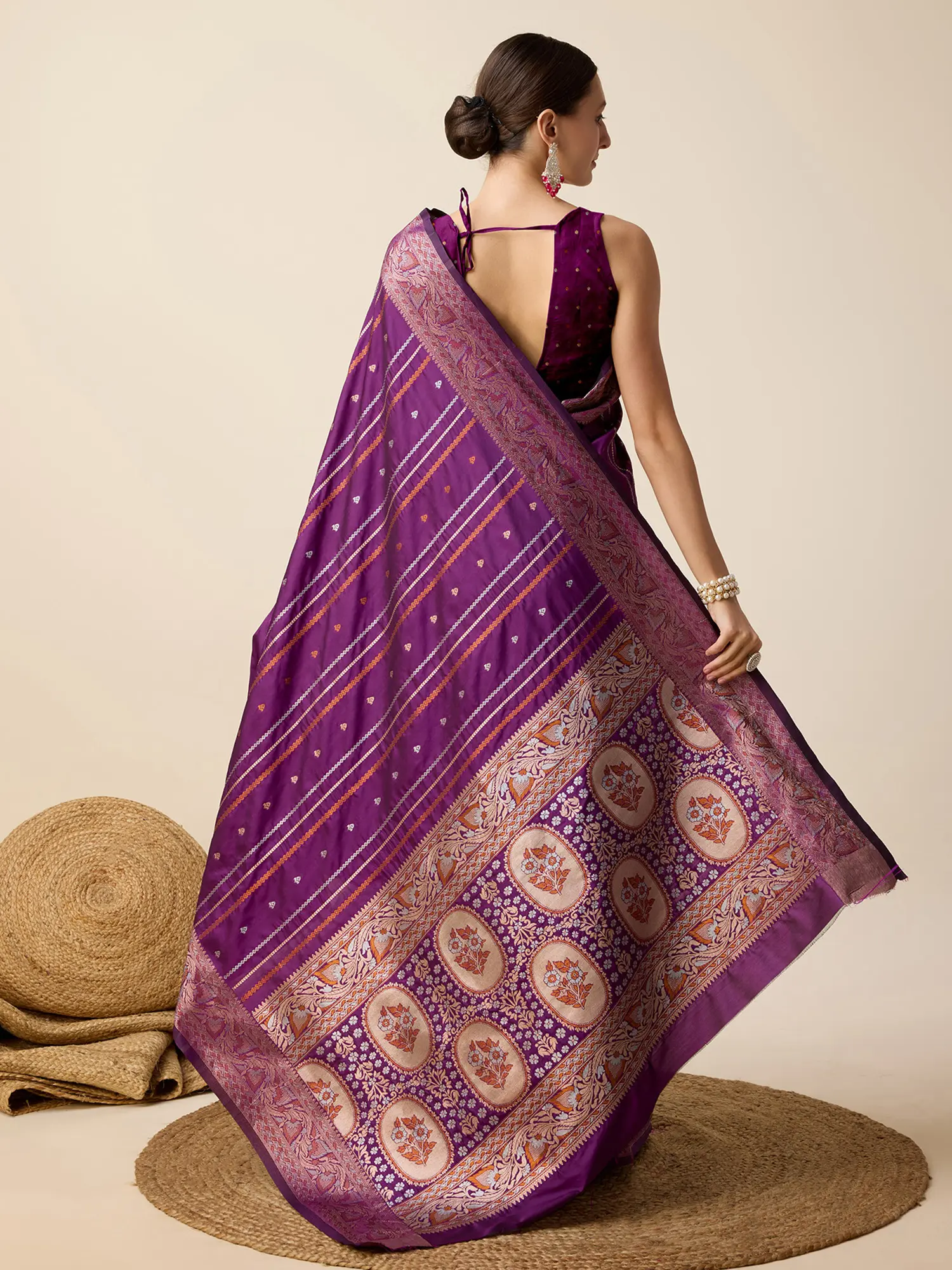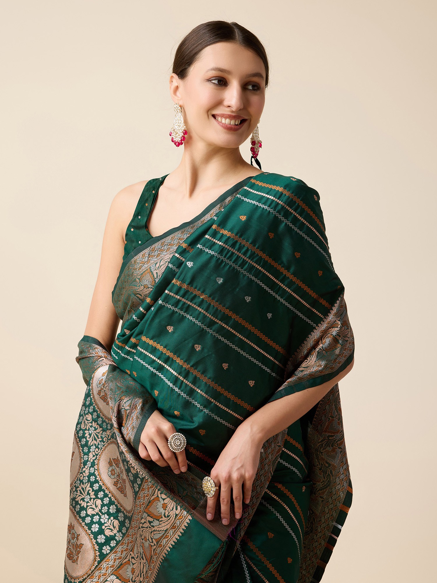 Art Silk Saree with Golden Stripes and Traditional Paisley Motifs All Over