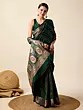 Bristol-Black Dola Silk Saree with Printed Leaves and Zari Brocaded Floral Border