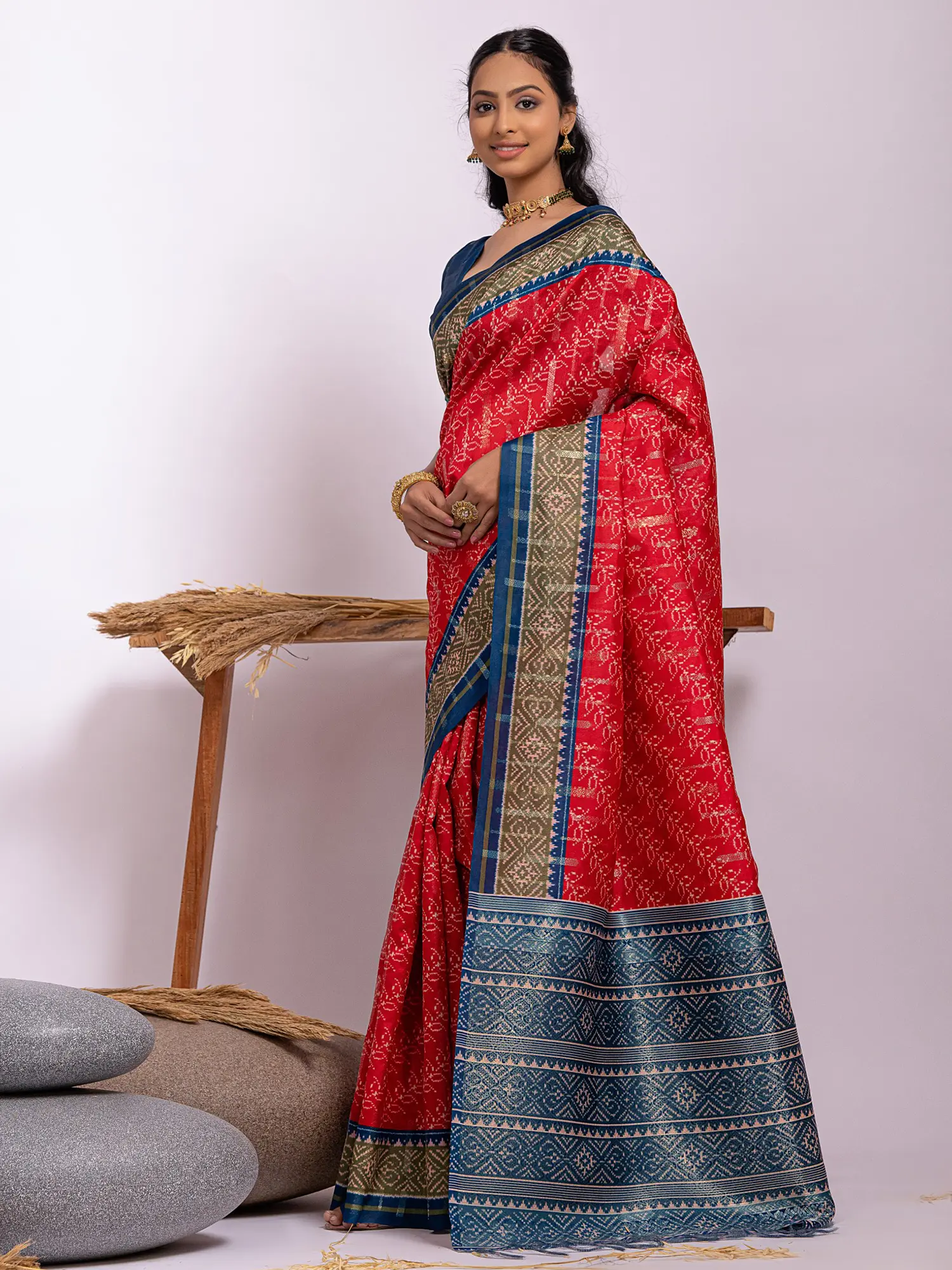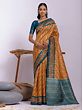 All Over Check Pattern And Temple Border Tussar Silk Saree With Tassels Pallu