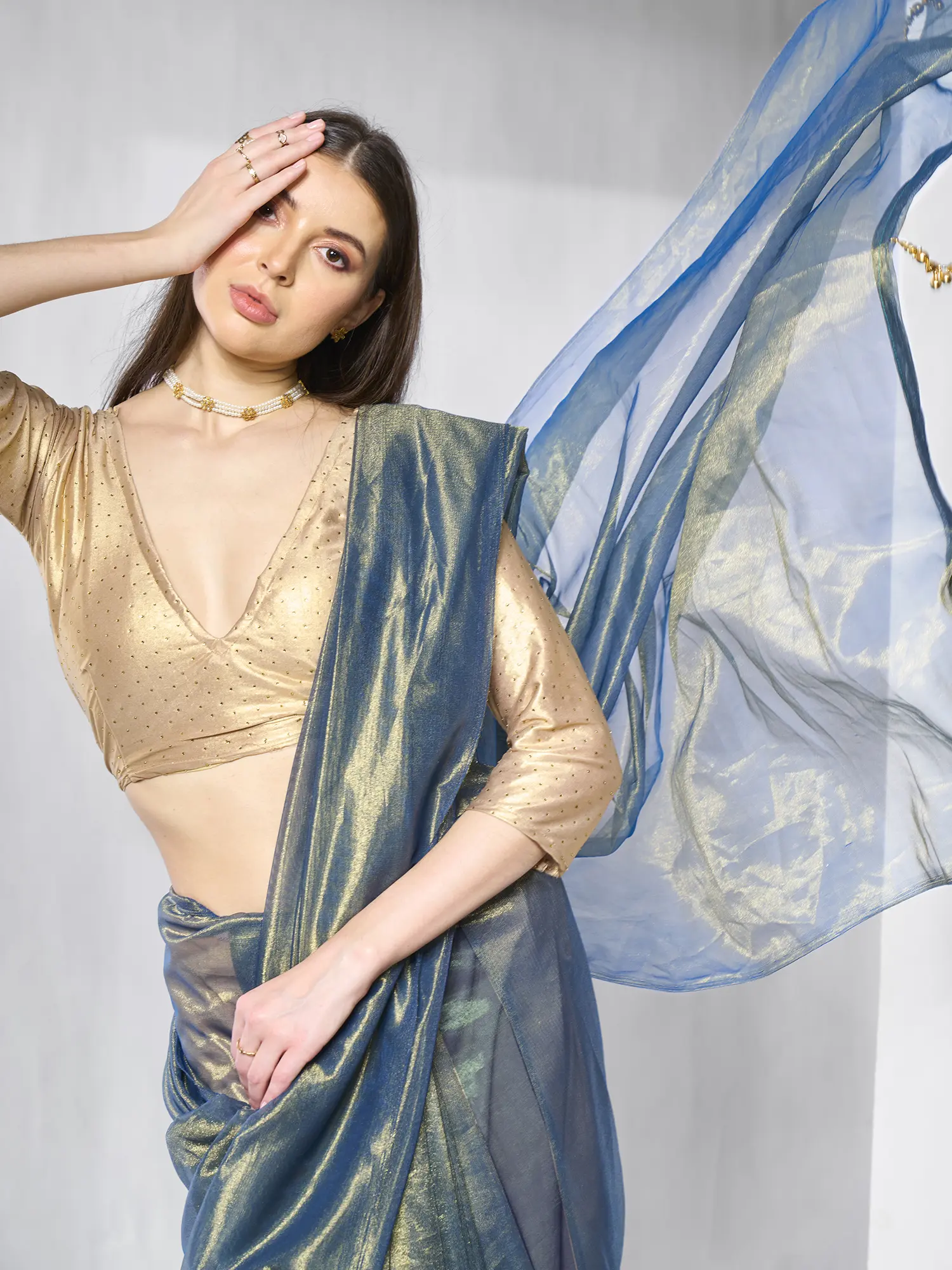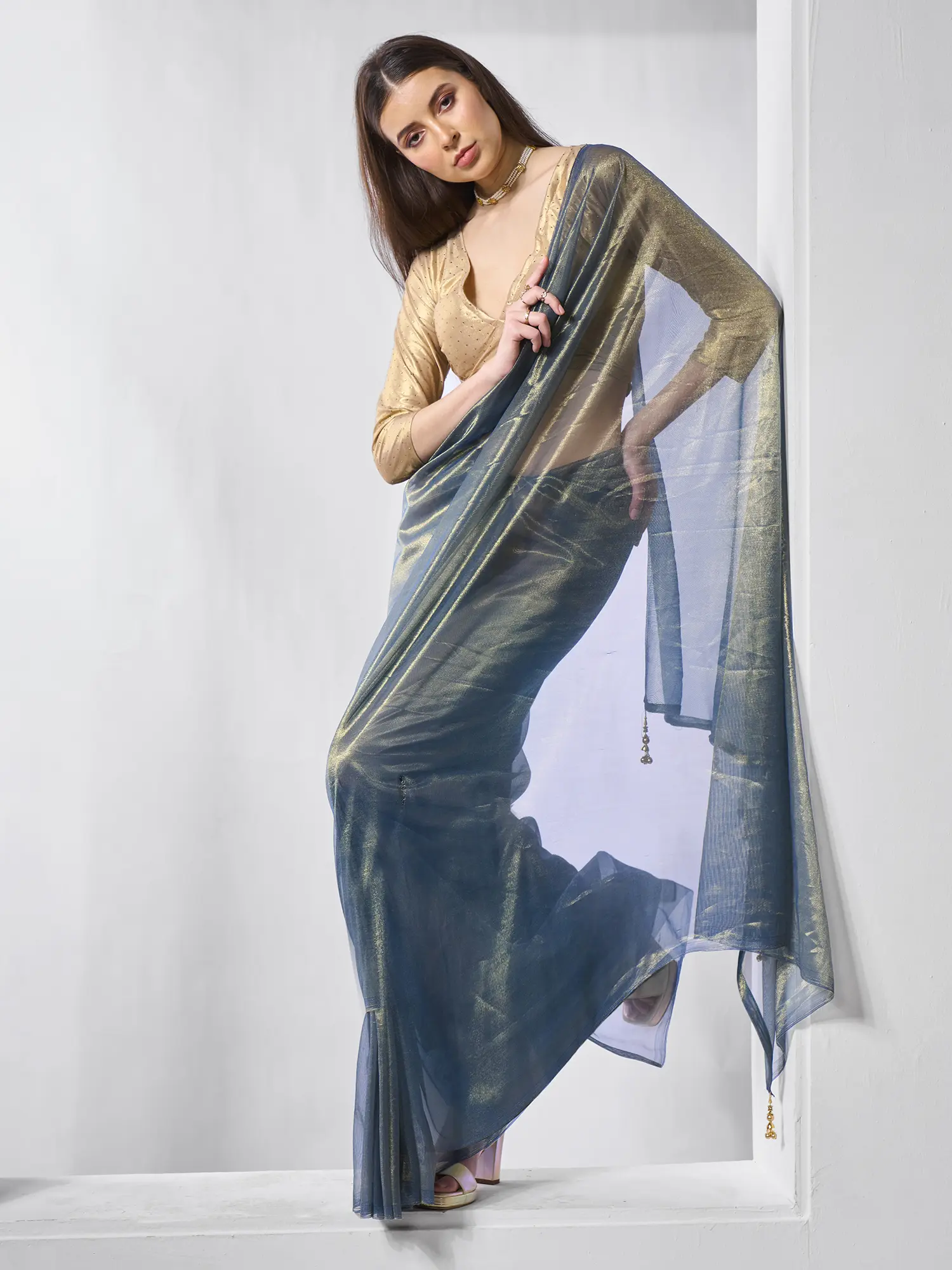 Multicolor Solid Designer Lace Work Border Chinon Party Wear Saree With Blouse