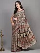 Black-Oyster Modal Silk Kalamkari Saree with Printed Multicolor Floral Jaal Pattern and Peacock Pallu