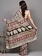 Kalamkari Saree from Telangana with Printed Warli Folk Art Motifs and Peacock-Elephant on Anchal