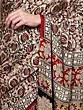 The saree is adorned with a captivating Kalamkari print, featuring a mesmerizing floral jaal pattern. Kalamkari, an ancient Indian art form, translates to "pen-work," and it is this meticulous hand-drawn or block-printed detail that breathes life into the design. Here, the delicate flowers and swirling vines are rendered in a harmonious palette of earthy tones, accented with deep reds and rich blacks. The complex motif is a visual feast, drawing the eye with its fine details and balanced composition. Each bloom and leaf seems to tell a story, a whisper from the artisans of Telangana, the land where this craft thrives.