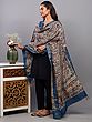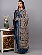 Wild-Dove Floral Vine Printed Kalamkari Dupatta with Woven Border in Golden Thread from Telangana