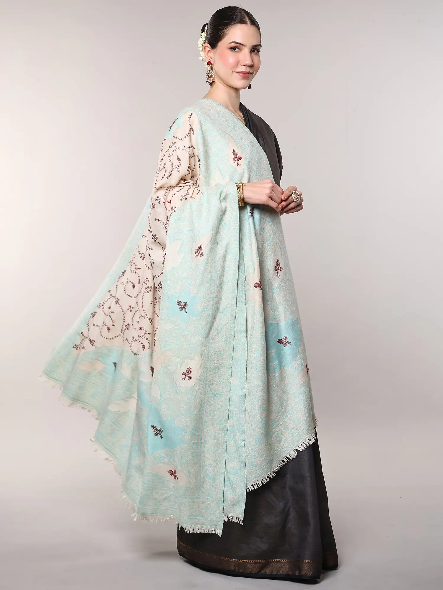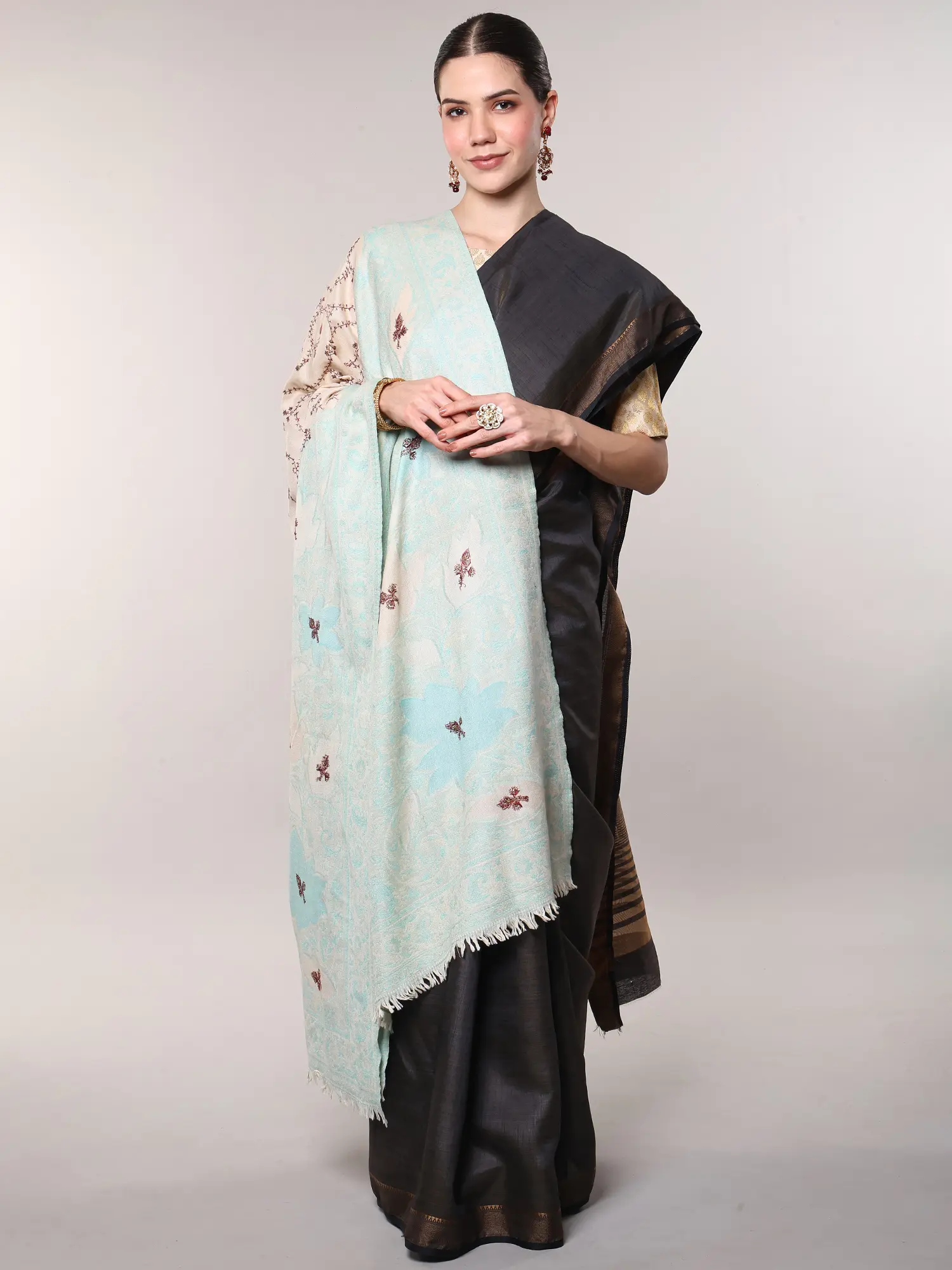 Sozni Embroidered Shawl with Flowers and Paiselys Woven Border from Amritsar