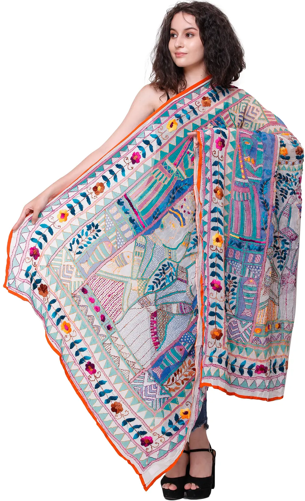 Phulkari Hand-Embroidered Dupatta from Punjab