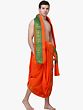 Discover the perfect blend of tradition and contemporary style with this exquisite dhoti and angavastram set. Crafted from pure, breathable cotton, this ensemble offers unparalleled comfort and a sophisticated drape, making it an ideal choice for a range of occasions, from religious ceremonies and cultural festivals to formal gatherings and celebratory events. The vibrant, spicy-orange hue of the dhoti radiates warmth and energy, commanding attention with its striking presence.