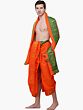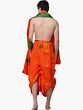 This dhoti and angavastram set is more than just clothing; it's a statement of cultural pride and refined taste. The classic draped style of the dhoti is universally flattering and offers a timeless appeal. The striking orange color, combined with the regal lion motifs, makes it a standout choice for grooms, groomsmen, participants in traditional ceremonies, or anyone looking to embrace their heritage with a touch of splendor. Pair it with a crisp white kurta for a more formal look, or wear it with a subtle silk kurta to enhance the richness of the ensemble. This set is designed to be a versatile addition to any discerning individual's traditional wear collection.