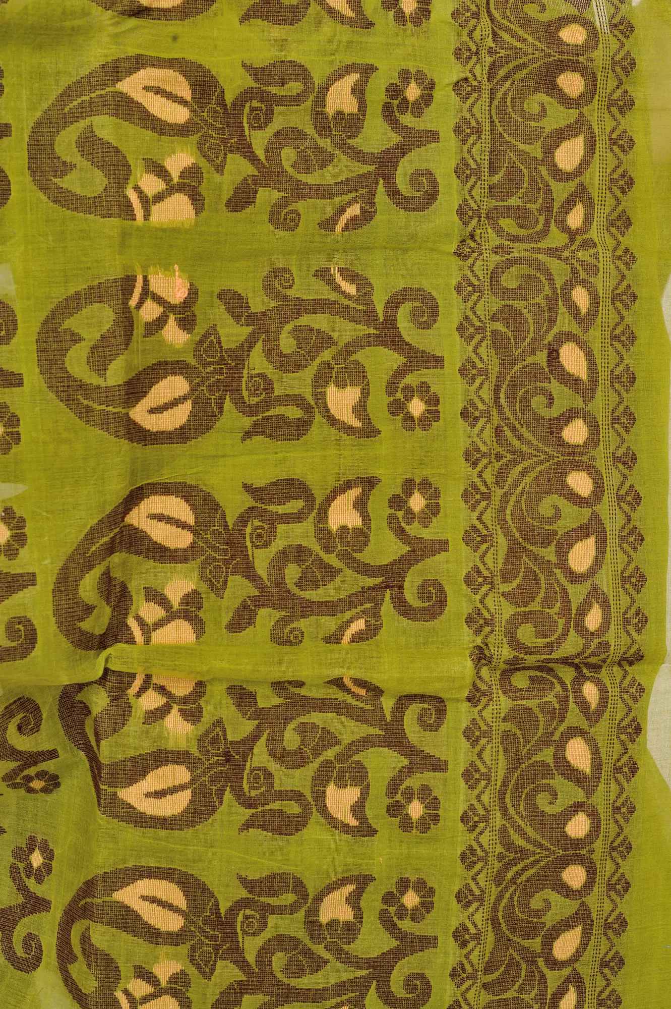 Amber-Brown Tangail Saree from Bengal with Woven Paisleys
