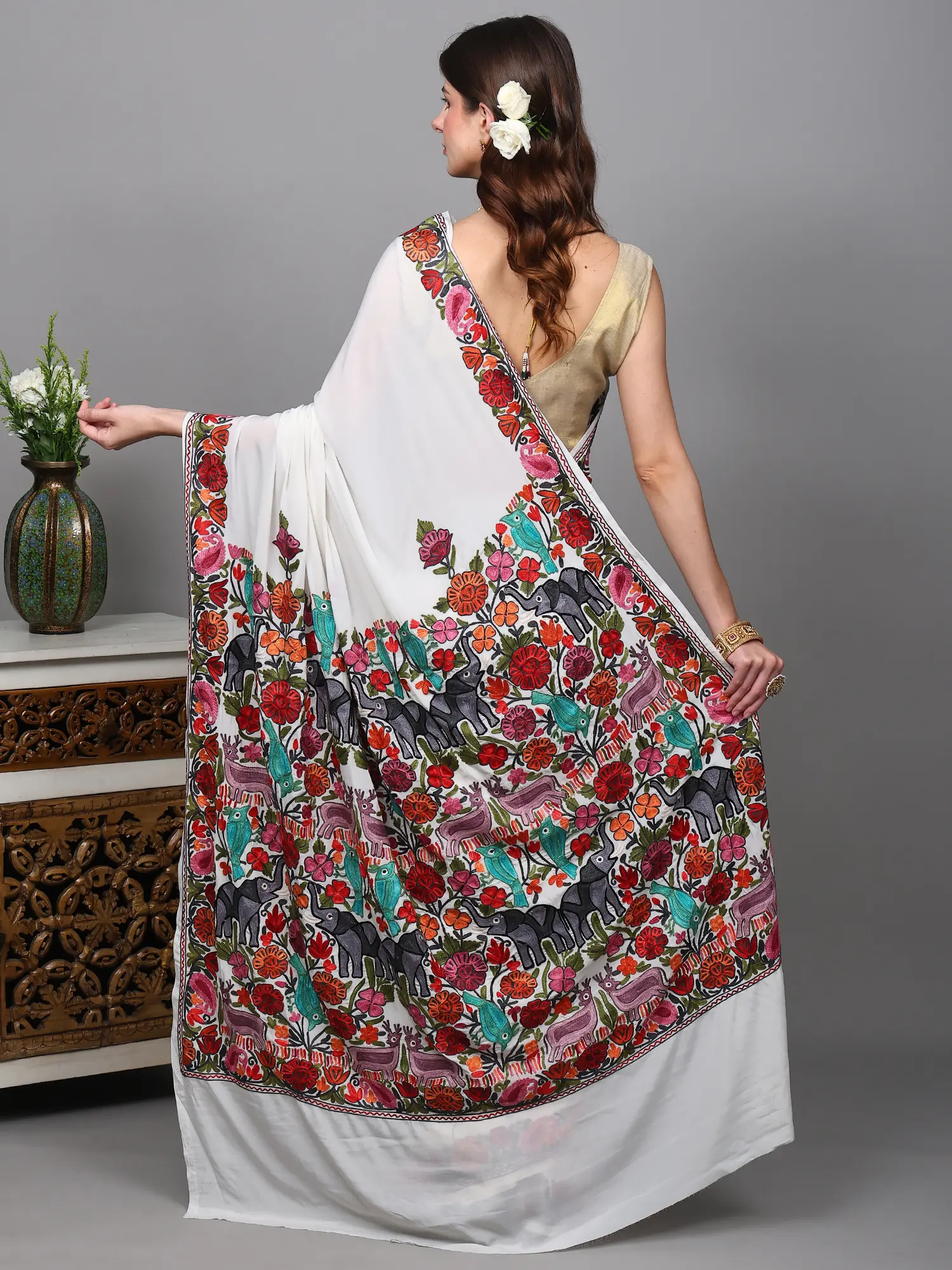 Algiers Blue Sari from Kashmir with Sozni Work