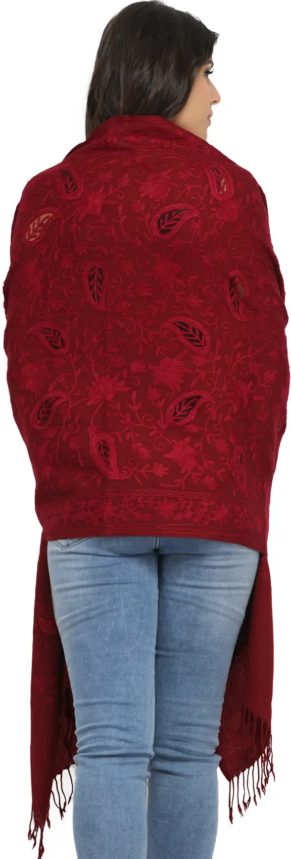 Crafted from pure wool, this stole offers unparalleled comfort and warmth. The natural fibers are soft against the skin, providing a cozy feel without being overly heavy. The generous dimensions ensure versatile styling options; drape it over your shoulders for a touch of elegance at an evening event, wrap it around your neck for added warmth on a crisp day, or wear it as a chic accent over casual attire. The rich red color evokes feelings of passion, sophistication, and festivity, making it a perfect accessory for celebrations, formal gatherings, or simply to elevate your everyday look. The finely tied tassels at each end add a final flourish, completing the artisanal charm. This stole is more than just an accessory; it's a piece of history and a celebration of enduring artistry.
