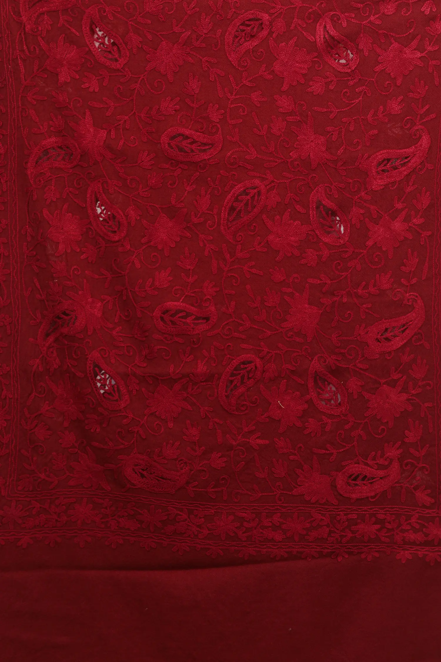 Immerse yourself in the rich tapestry of Indian craftsmanship with this exquisite stole, originating from the historic city of Amritsar. Renowned for its intricate textile traditions, Amritsar has long been a hub for artisanal skills, and this stole is a testament to that legacy. Each piece is a wearable work of art, meticulously hand-embroidered using the traditional Aari technique, a method passed down through generations of skilled artisans. The deep, captivating red hue provides a luxurious backdrop for the delicate artistry, making it a statement accessory for any occasion.