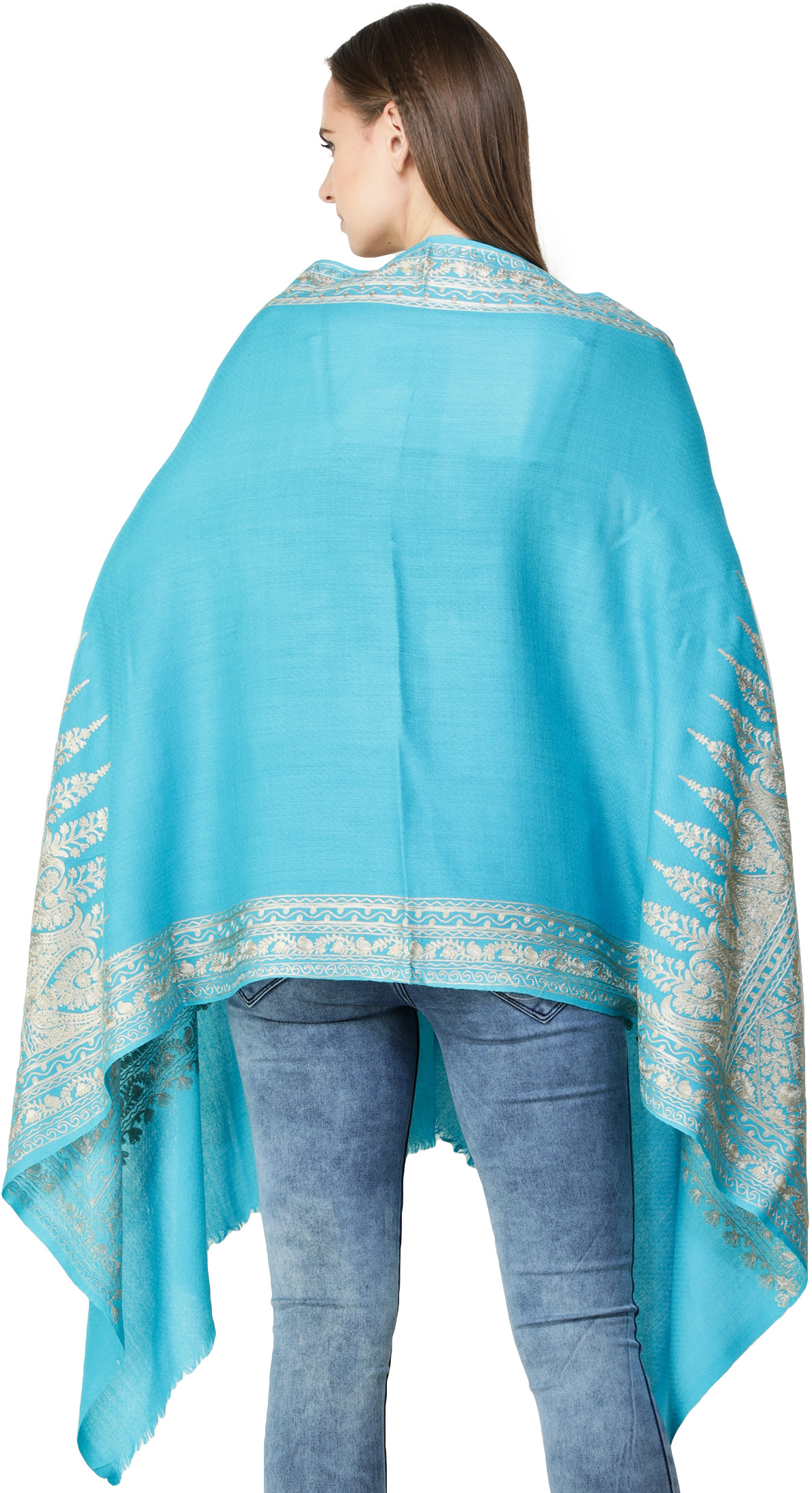 Stole From Kashmir with Aari Hand-Embroidered Mandala and Border