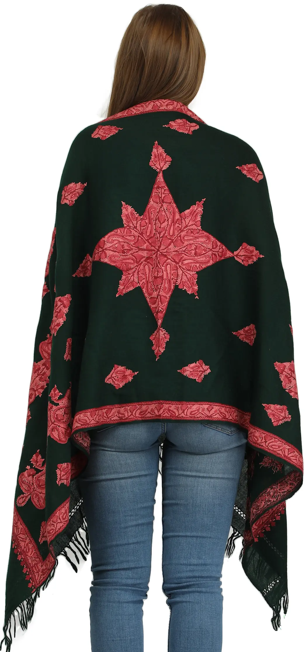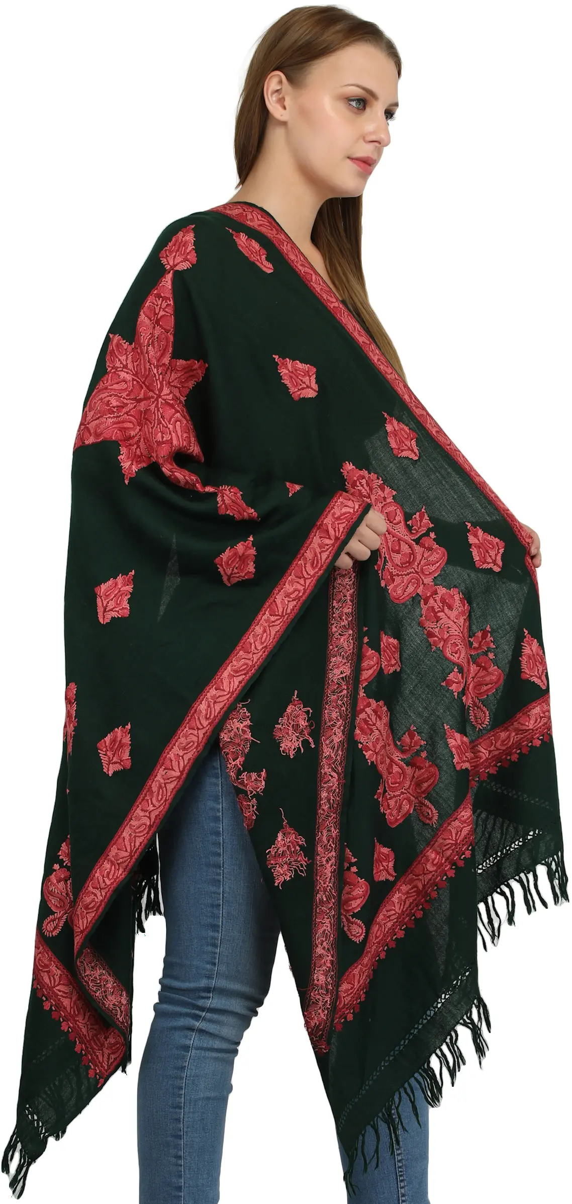 The Beautiful Stole from Kashmir with Hand-Embroidered Giant Motif is a masterpiece woven delicately with heritage and tradition. These shawls have origins dating back to ancient Kashmiri artistry and are made from pure Pashmina wool. The highly Skilled artisans have dedicated hours of time and effort to delicately embroider giant motifs, each working as a reflection of their rich cultural heritage. The designs, born from centuries of evolution, showcase the intricate artistry that has been passed down through generations. These shawls are a perfect blend of tradition with modern trends, making them a precious accessory. The deep, rich colors harmonize with the softness of the Pashmina wool, making it a luxurious addition to any wardrobe.